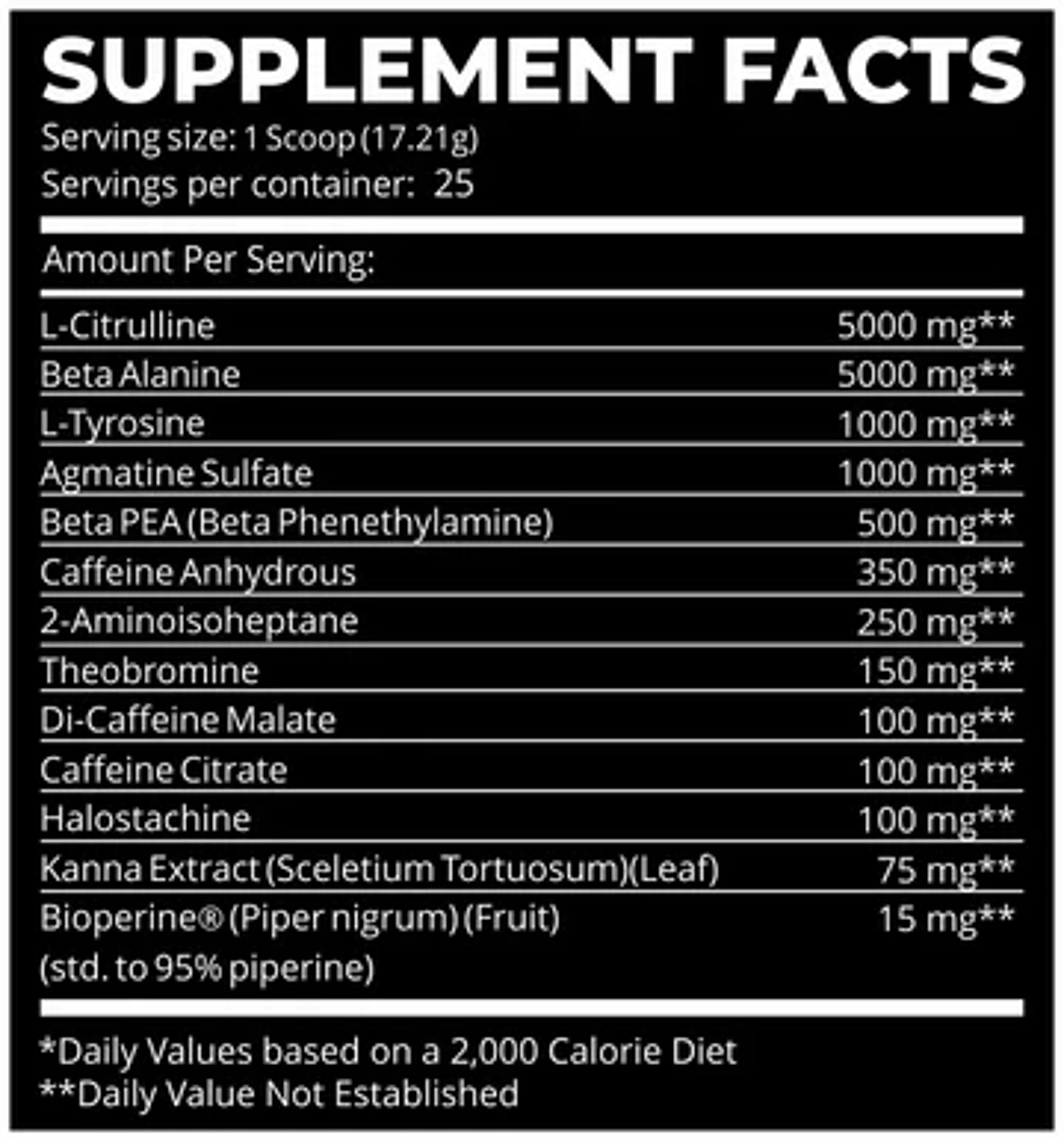 Dark Labs Crack Diamond Edition is a high-intensity pre-workout supplement designed to enhance energy, focus, and stamina. Each container has 25 servings, featuring key ingredients like 5000 mg L-Citrulline for muscle pumps, 5000 mg Beta Alanine for endurance, 1000 mg L-Tyrosine for focus, and 550 mg of various caffeine forms for sustained energy. Ideal for serious athletes aiming to break through performance plateaus, this formula supports improved blood flow, reduced fatigue, and heightened concentration for superior workout results.