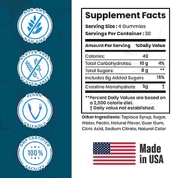 Elevate your fitness routine with our delicious Creatine Gummies, the delicious way to power up your workouts. These gummies offer all the scientifically-backed benefits of creatine, a naturally occurring compound that plays a vital role in muscle growth, strength enhancement, and improved athletic performance.