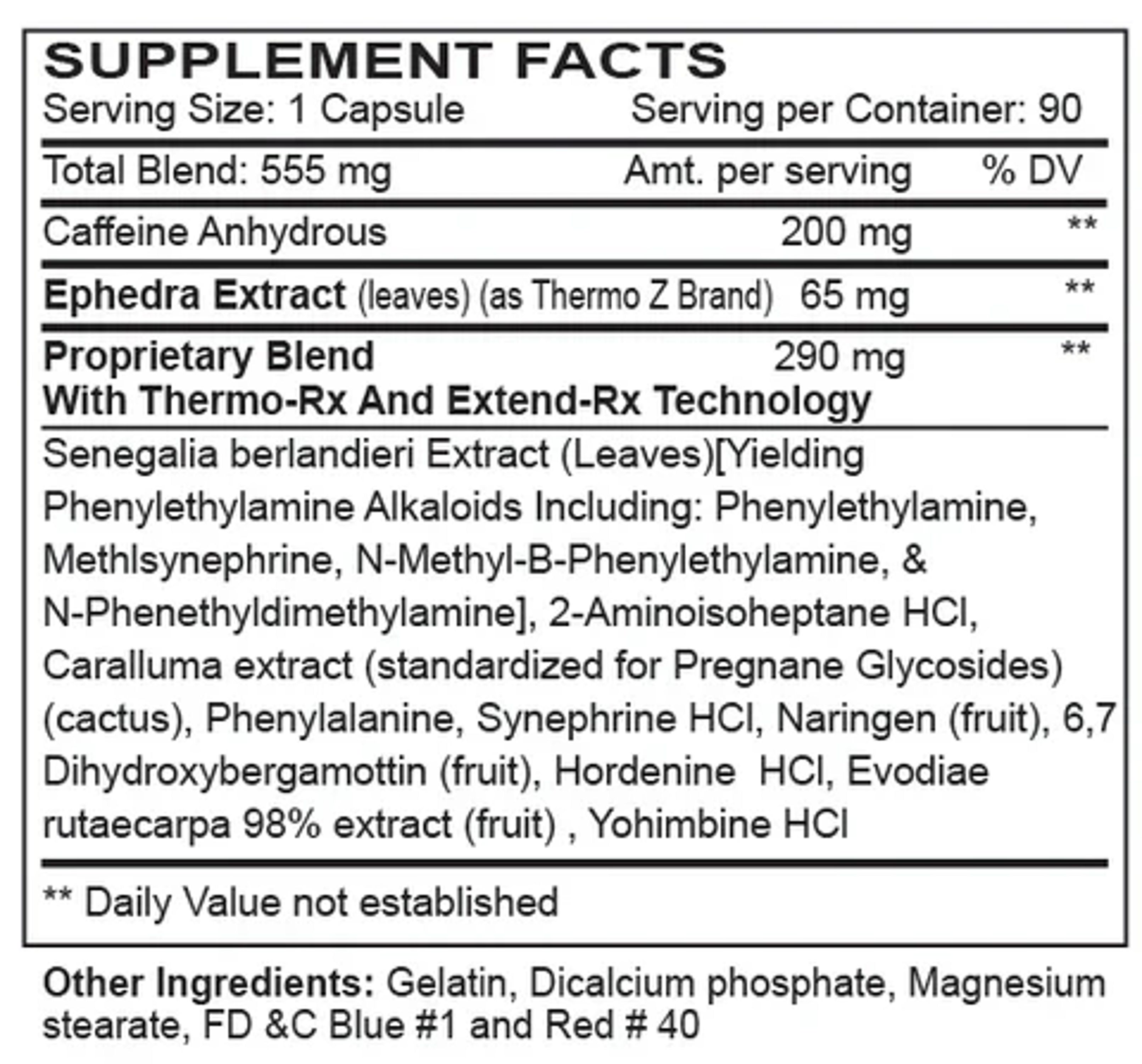 IT’S HARDCORE! The HYPERRUSH is without a question, the most powerful hardcore energizer/weight management product on the market today. While other Diet & Energy aids require you to take 3 to 4 pills to feel even a slight effect… Black Mamba®-HYPERRUSH is so strong, with its Thermo-Rx® brand of Phenylethylamine alkaloids and Thermo-Z® brand Ephedra extract, that all you need to take is ONE and you’ll be AMPED-UP to the max and in HYPERBURN mode to lose weight like you never have before! Even hardcore ephedrine fans who were consuming mega dosages of their beloved ECA stacks per day, consider the effects of this product beyond extreme!