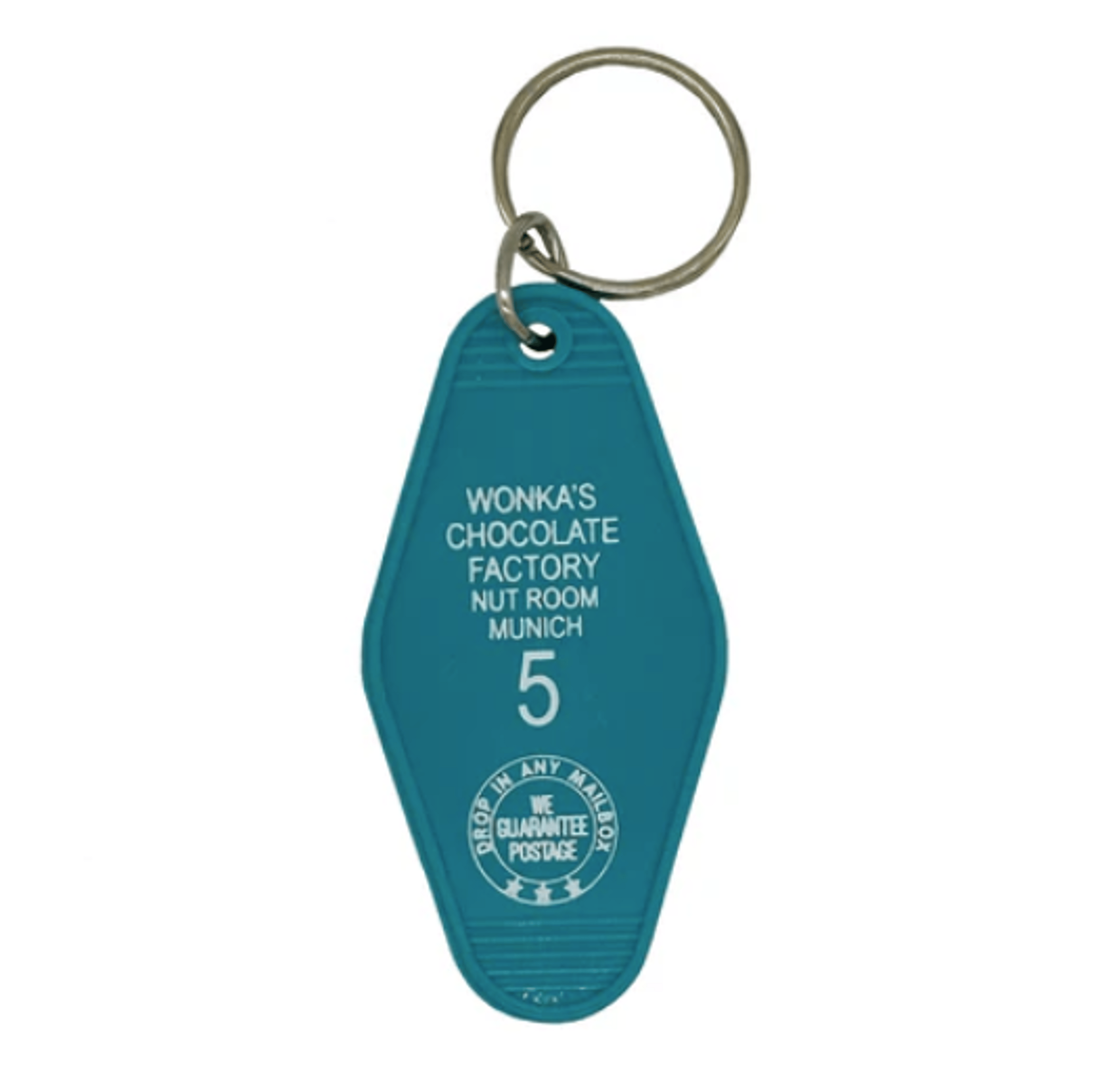 • Vintage motel key fob design: Classic “Wonka’s Chocolate Factory” graphic evokes old‑school roadside charm and pop culture appeal.