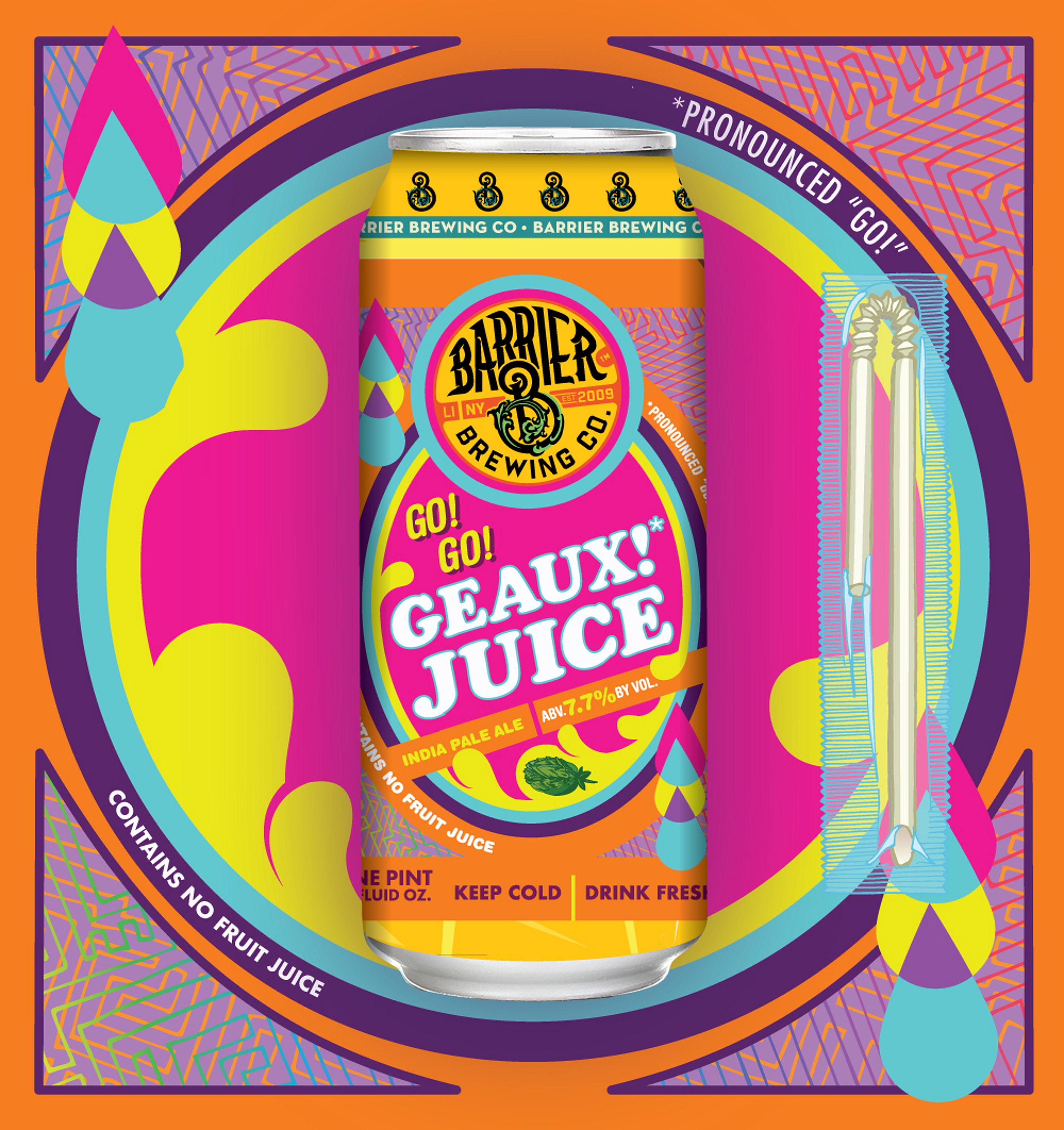 IPA - 7.7% ABV Double Dry Hopped IPA inspired by those good ol' boxes of liquid gold we would crush as kids. Pronounced "GO JUICE!" - this hazy boy is packed with a plethora of fruitastic flavors. This beer contains no added juice or fruits.