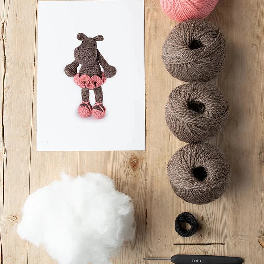 Georgina the Hippo has been a firm favourite in the menagerie for more than ten years, becoming the first step in learning how to crochet for many. Hippos can grow up to sixteen feet long, but this crochet version will sit comfortably in your hand, is utterly adorable and the perfect gift for any wild animal lover, and now you can crochet her a ballerina costume to wear!
