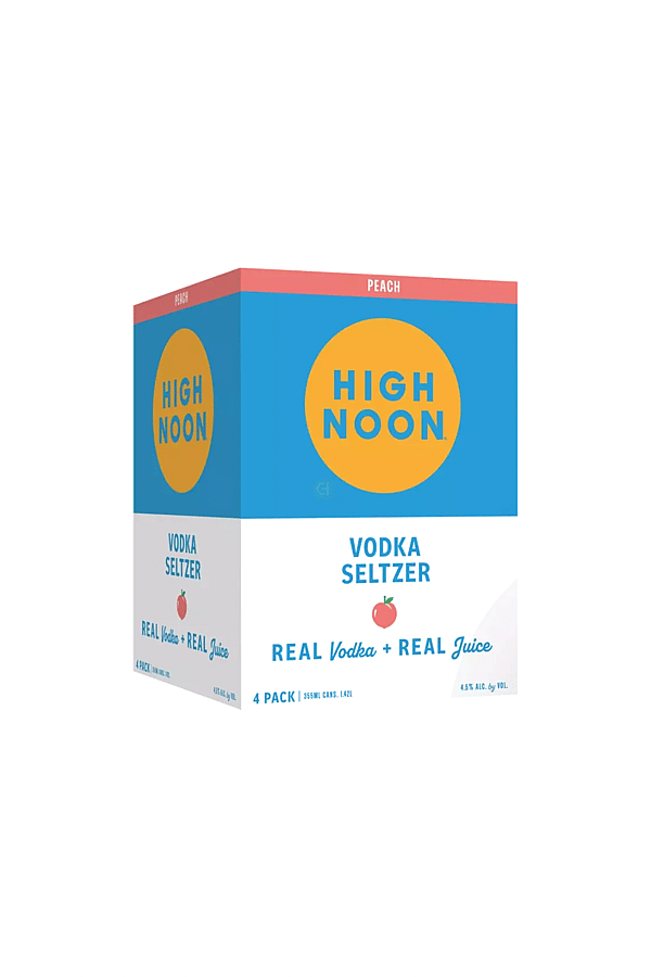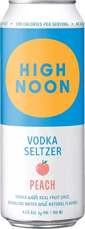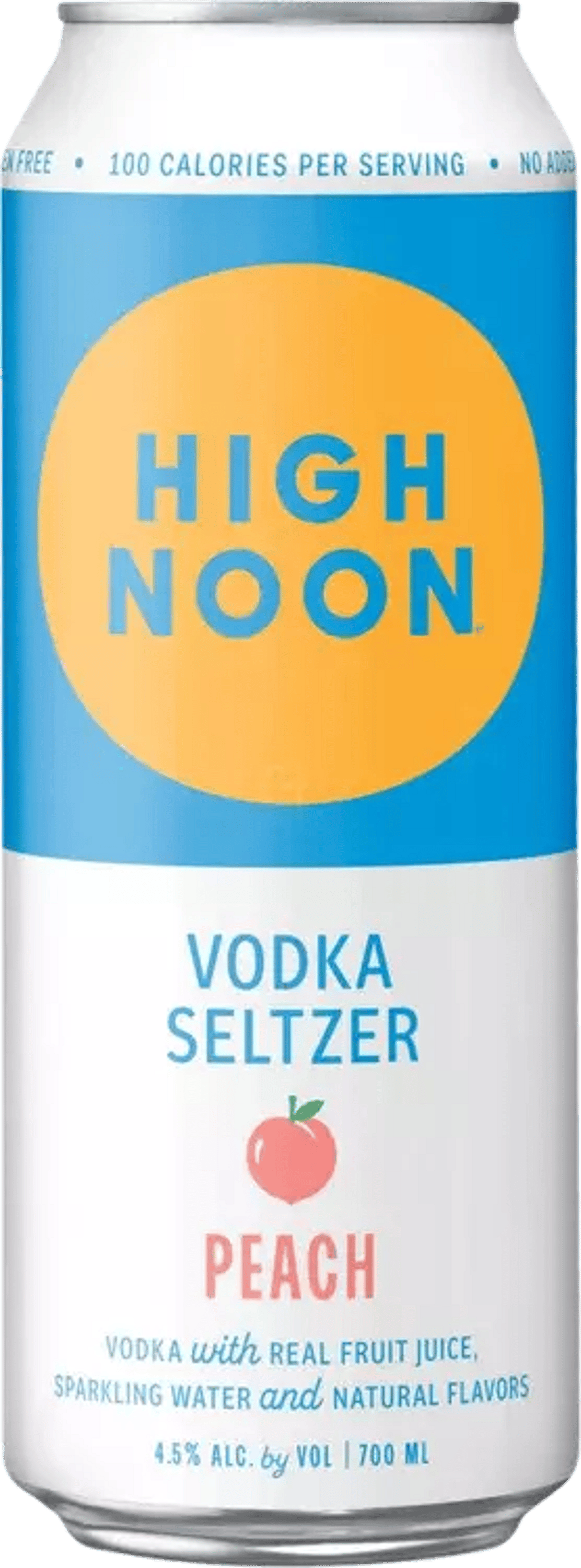 Live like the sun's out with High Noon Peach Vodka Seltzer. Made with real vodka & real juice, sparkling water and natural flavors, this vodka seltzer has ripe and tangy peach flavors in a crisp, lively, sparkling drink. With 100 calories, this peach hard seltzer is gluten free with no added sugar. Just toss these cans in the cooler or the fridge for convenient drinks during your next sunny adventure. High Noon Peach Vodka Seltzer is perfect when sipped ice cold paired with porch swing sunsets and long days at the lake. Each can has 4.5% alcohol by volume.