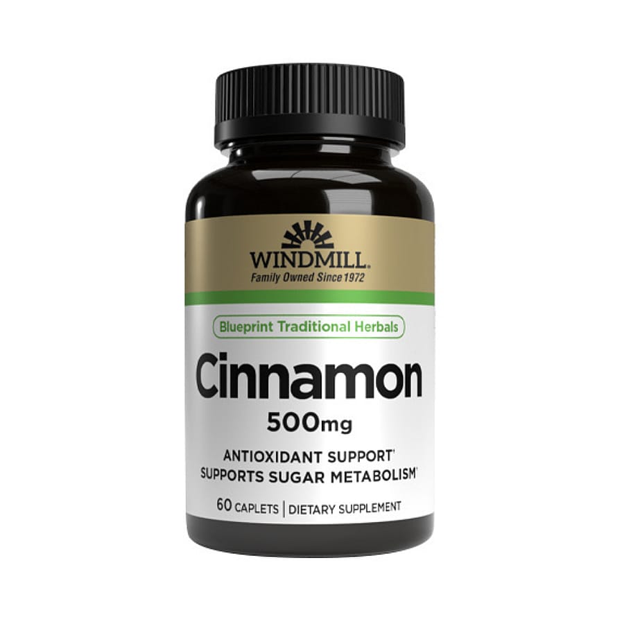 Cinnamon provides 500 mg from Cinnamon bark powder and extract per caplet. Cinnamon supports normal sugar metabolism when combined with exercise and a healthy diet.