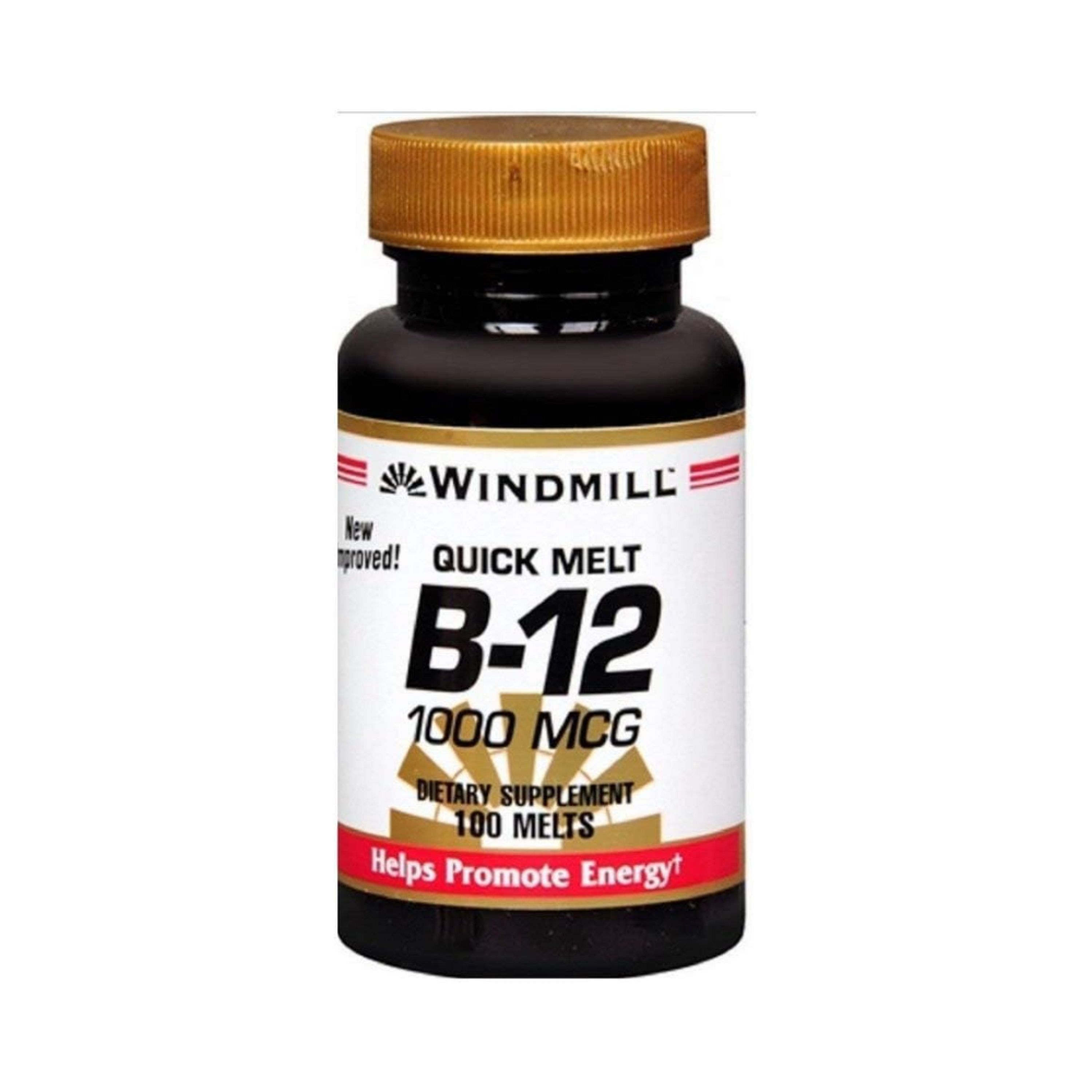 Windmill Vitamin B-12 delivers 1,000 mcg of cyanocobalamin per fast-dissolving sublingual tablet. Designed for rapid release, these melts help support energy metabolism, nervous system health, and red blood cell formation. Windmill has been a trusted name in wellness for over 50 years, producing supplements in the USA under current Good Manufacturing Practices (cGMP) for consistent quality and purity.
