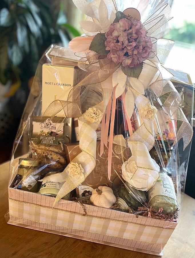 These gift baskets are perfect for all occasions...filled with full size products, usually a chocolate, crackers, spread, brew pop, cookies, snacks, I kindly will take requests, perfect for sending condolences...all baskets include a customized card.