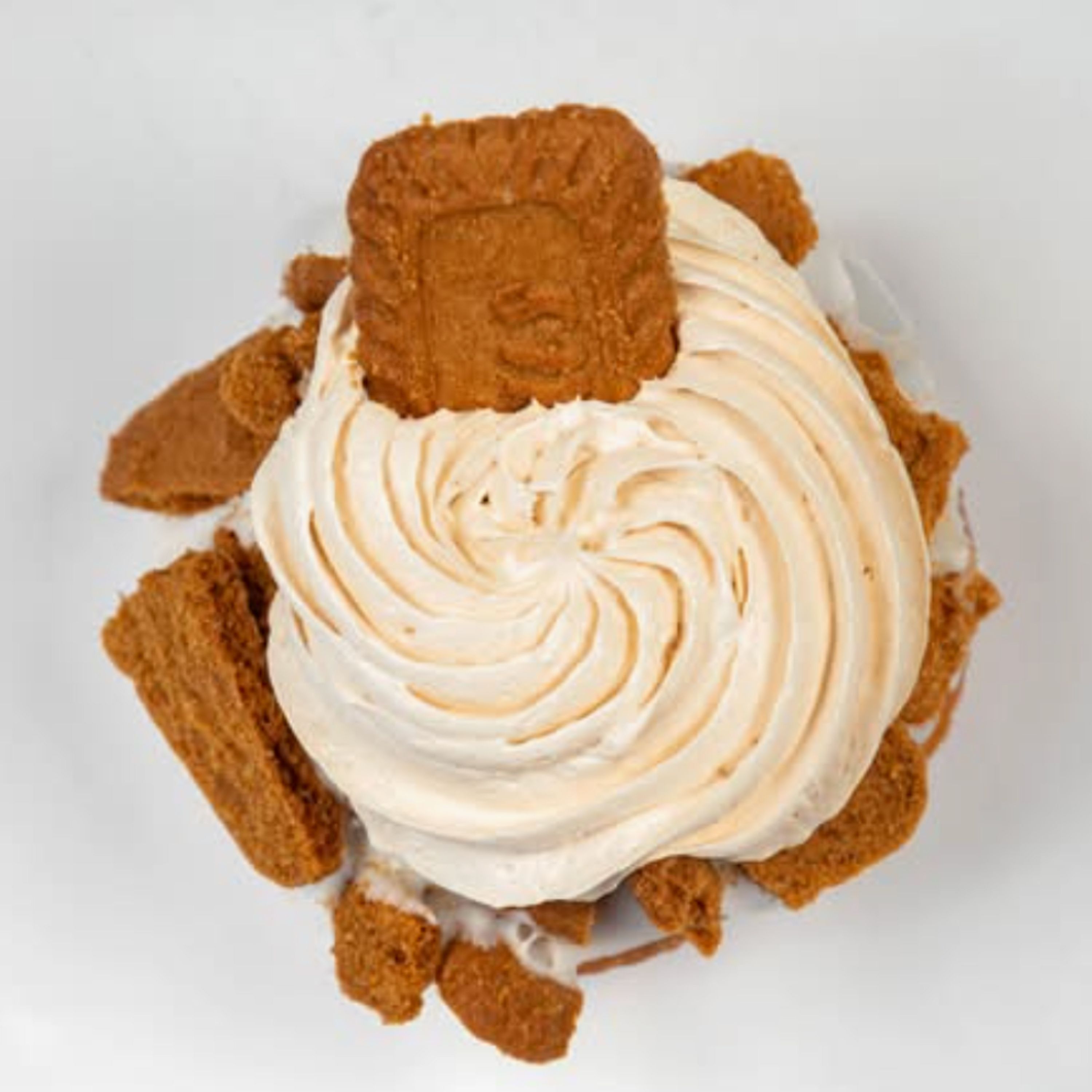 Vanilla donut, vanilla icing, Biscoff cookie crumble, cookie butter mousse.