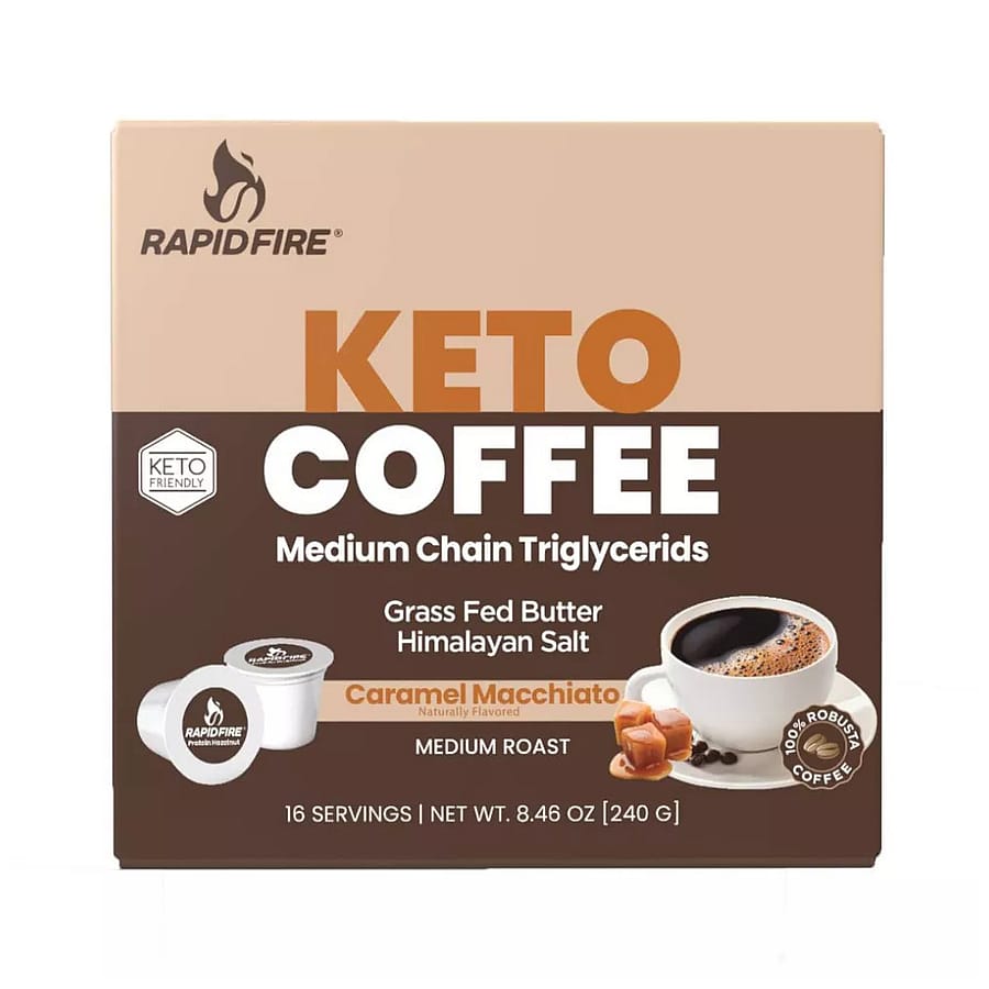 Rapid Fire Ketogenic Coffee Pods offer the finest creamy, delicious Caramel Macchiato flavored functional coffee in convenient fast-brew pods. Rapid Fire crafts organic coffee with coconut oil, MCTs and grass-fed butter ― along with a touch of Himalayan salt – to create a delicious, satisfying and nutritious coffee beverage. These powerful superfoods contain healthy fats that are loaded with energizing compounds, fat-liberating essential fatty acids, and health-protecting antioxidants for numerous nutritional benefits.