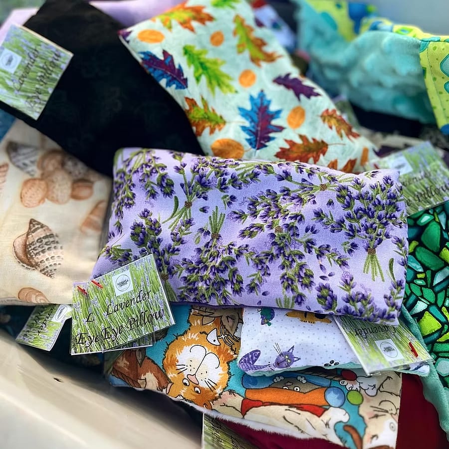 Our handmade eye pillows are used for the purpose of rest and relaxation. They are approximately 4.5" x 8.5". The outside cover is either made of flannel or cotton/minkie mix. The outer covers can be removed and machine washed. Our eye pillows are filled with an inner sleeve of flax seed and lavender buds which can be used both cold or hot. Directions: Heat in Microwave at 30 second intervals until desired temperature. For cold use place in a bag inside refrigerator or freezer.