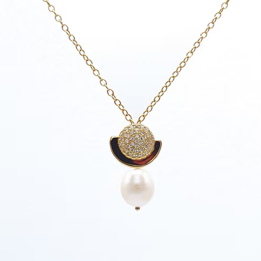 Timeless pearls wrapped in golden romance. - .950 Gold-plated sterling silver Pendant - Pavé-set CZ - Freshwater pearl - 14k Gold-filled chain - Length options 16in, 17in, 18in