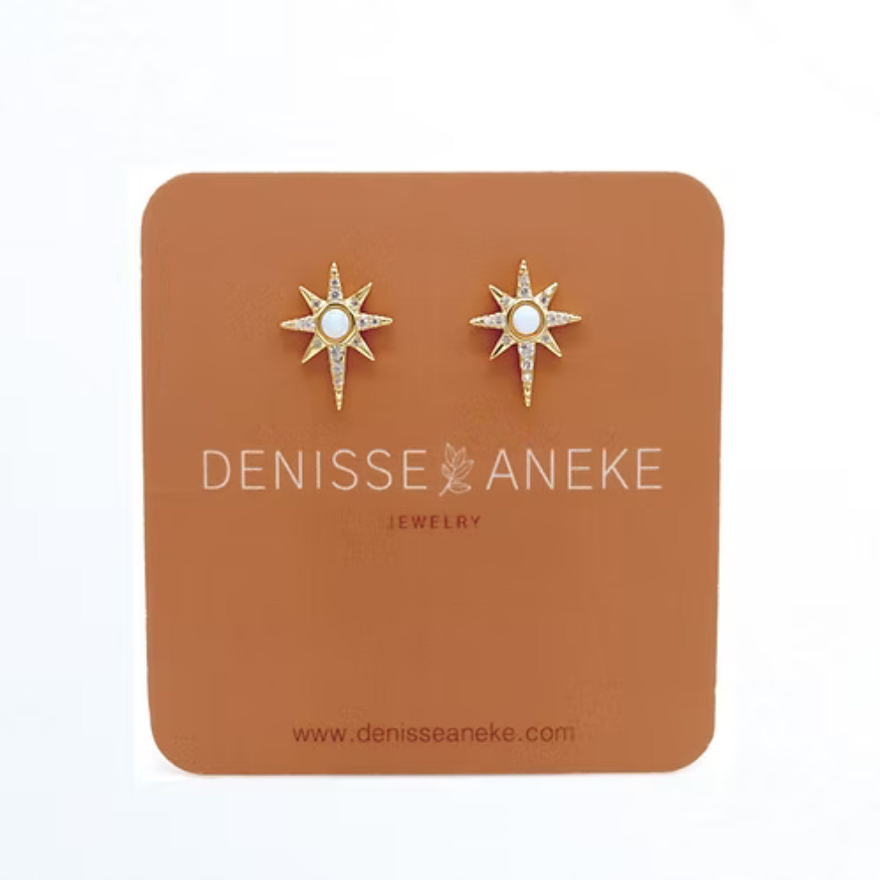 A little star, a hint of opal, made to shine with you. - .925 Gold-plated sterling silver - Lab grown opal - Pavé-set CZ - 0.4 in x 0.3 in