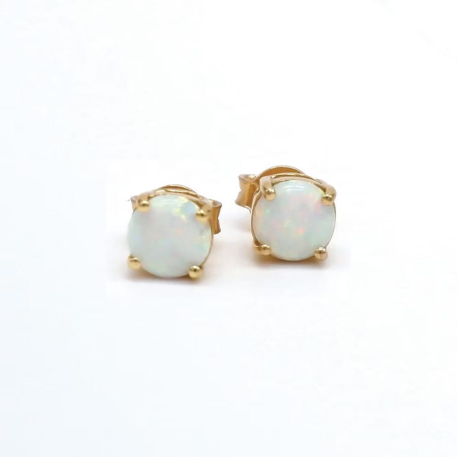 Soft light captured in an opal, a whisper of color and grace. - .950 Gold-plated sterling silver - Lab-grown opal. - 0.2 in Diameter.