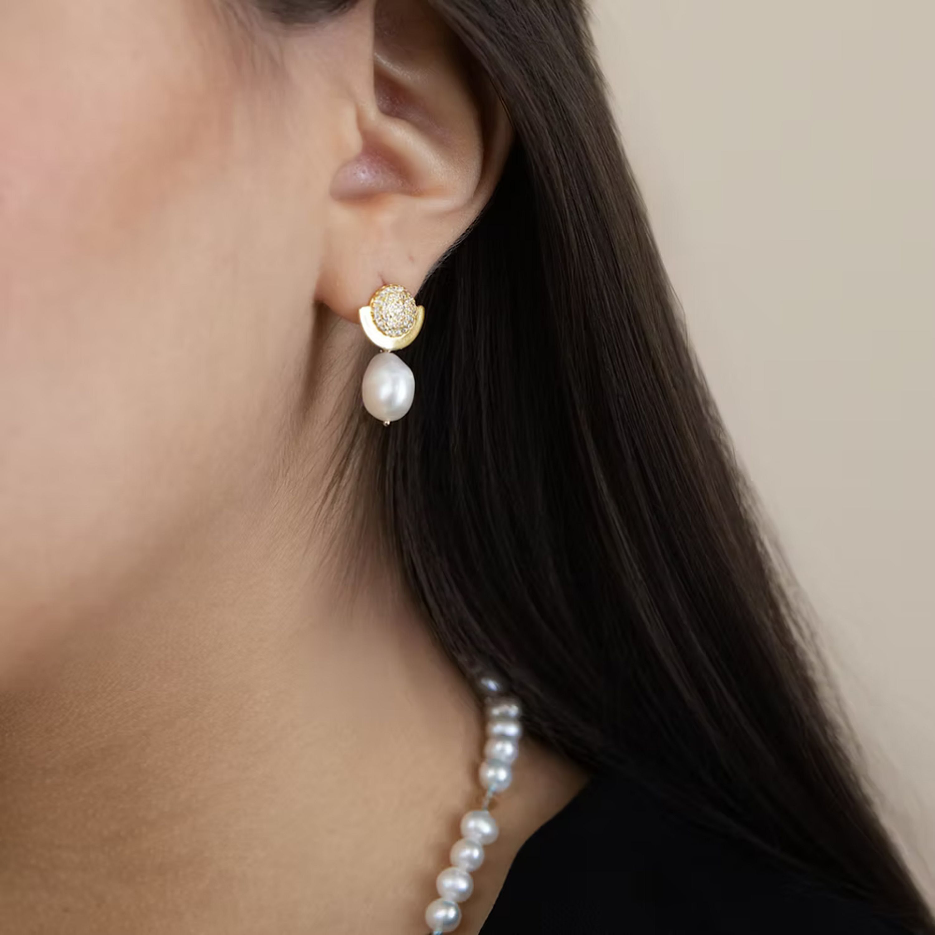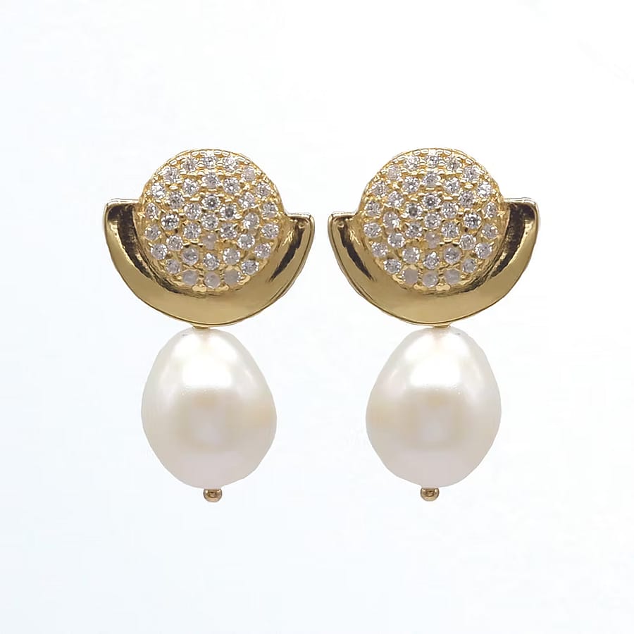 Timeless pearls wrapped in golden romance. - .925 Gold-plated sterling silver - Pavé-set CZ - Freshwater pearls - 0.7in long x 0.3in wide