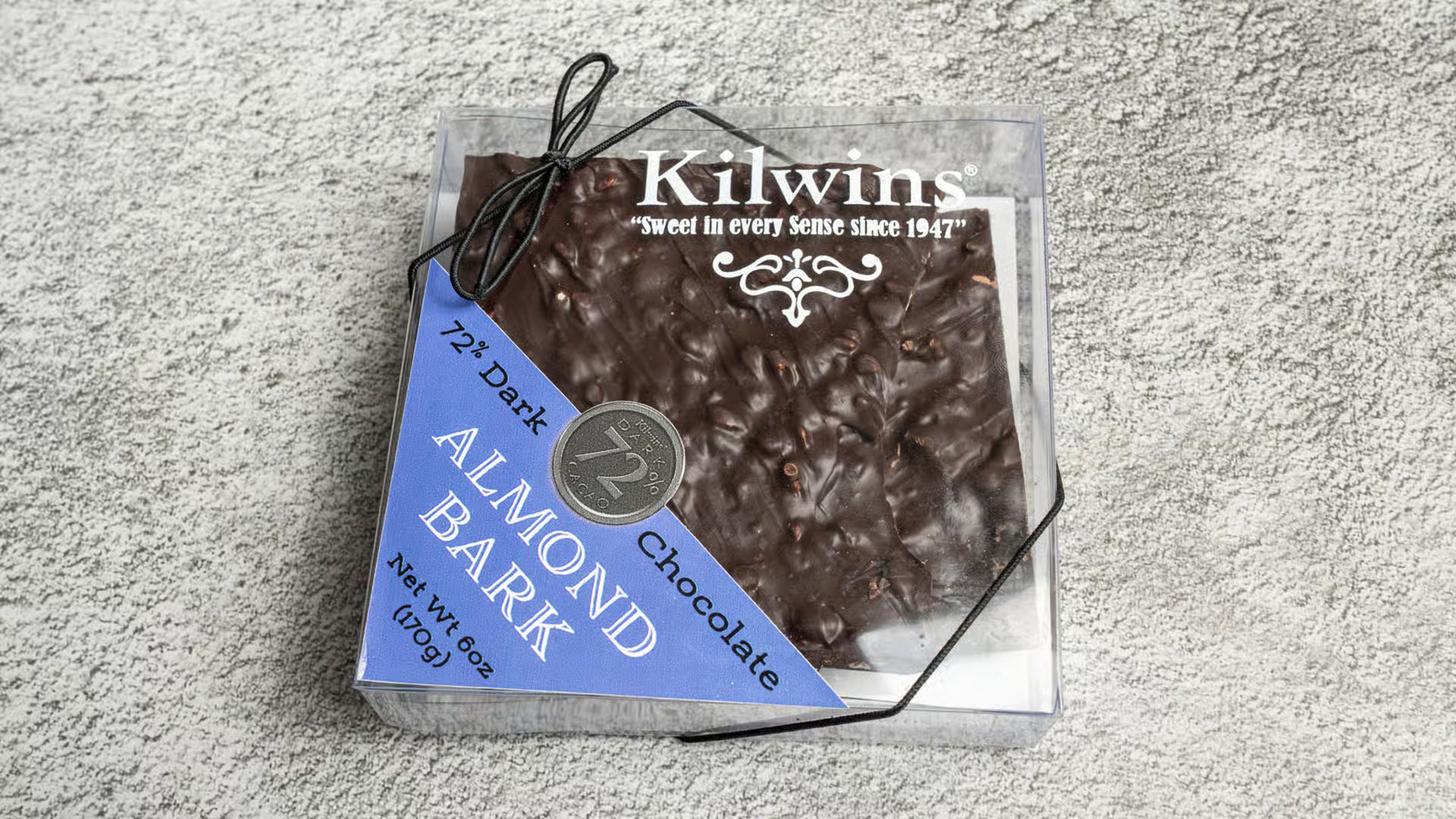 Rich 72% dark chocolate blended with crunchy roasted almonds to create a satisfying bark.