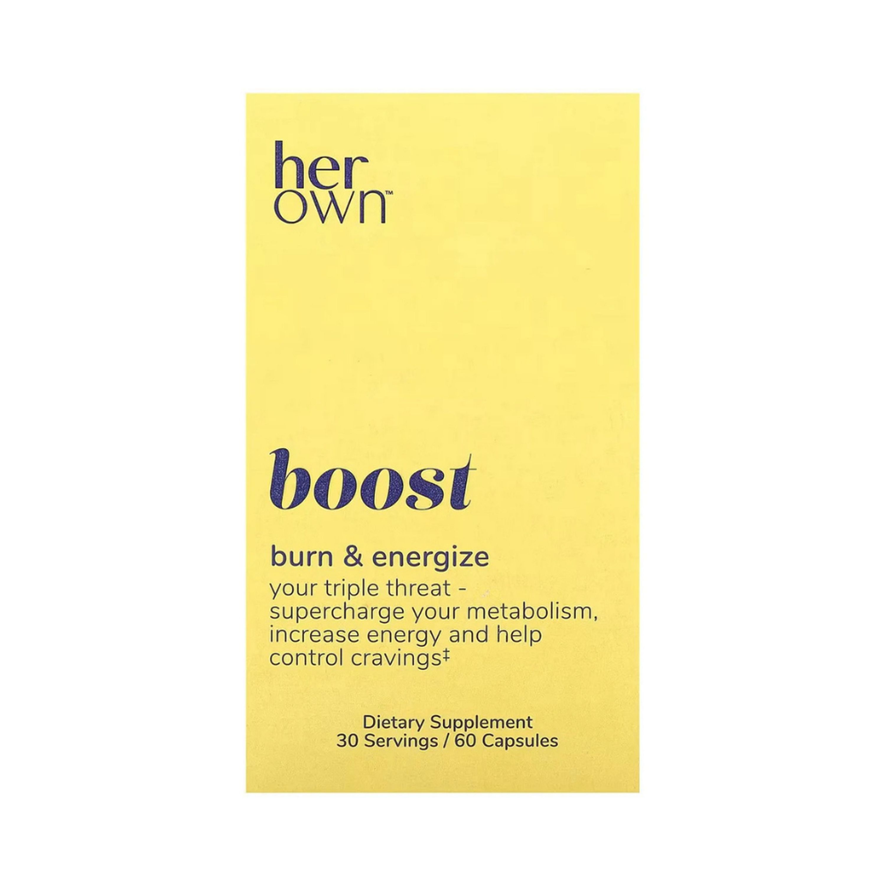 Say goodbye to unwanted cravings and those late-night munchies. Say hello to greater energy levels, stoked metabolism and more effective weight management. To give your life the natural boost it needs, just two Her Own Boost capsules a day will support the power you want to burn, energize and repeat!