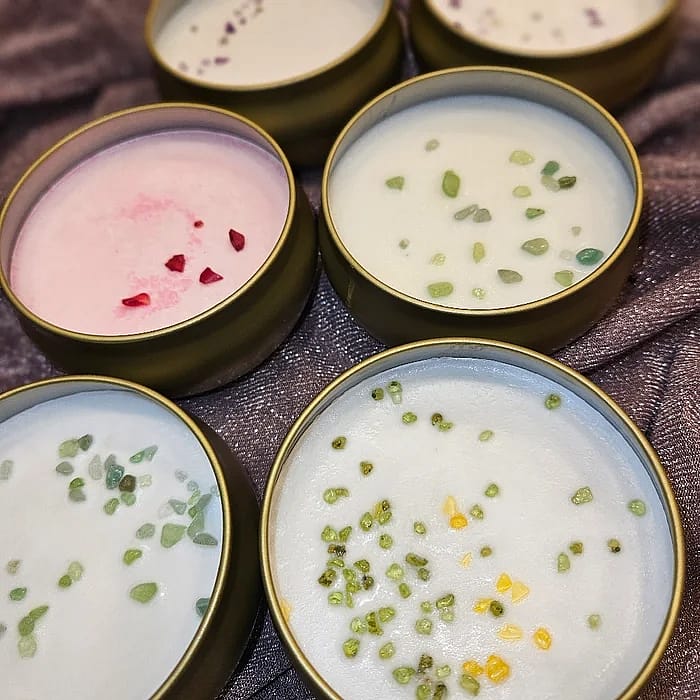 Wrap your home in the gentle glow of our wickless candles. Infused with premium fragrance oils and adorned with botanical glitters, tiny crystals, and seashell whispers—pure, beautiful details that lift the vibe.