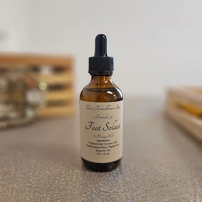 Wrap your feet in comfort with Foot Solace Massage Oil, crafted with coconut oil, frankincense resin, and peppermint essential oil.