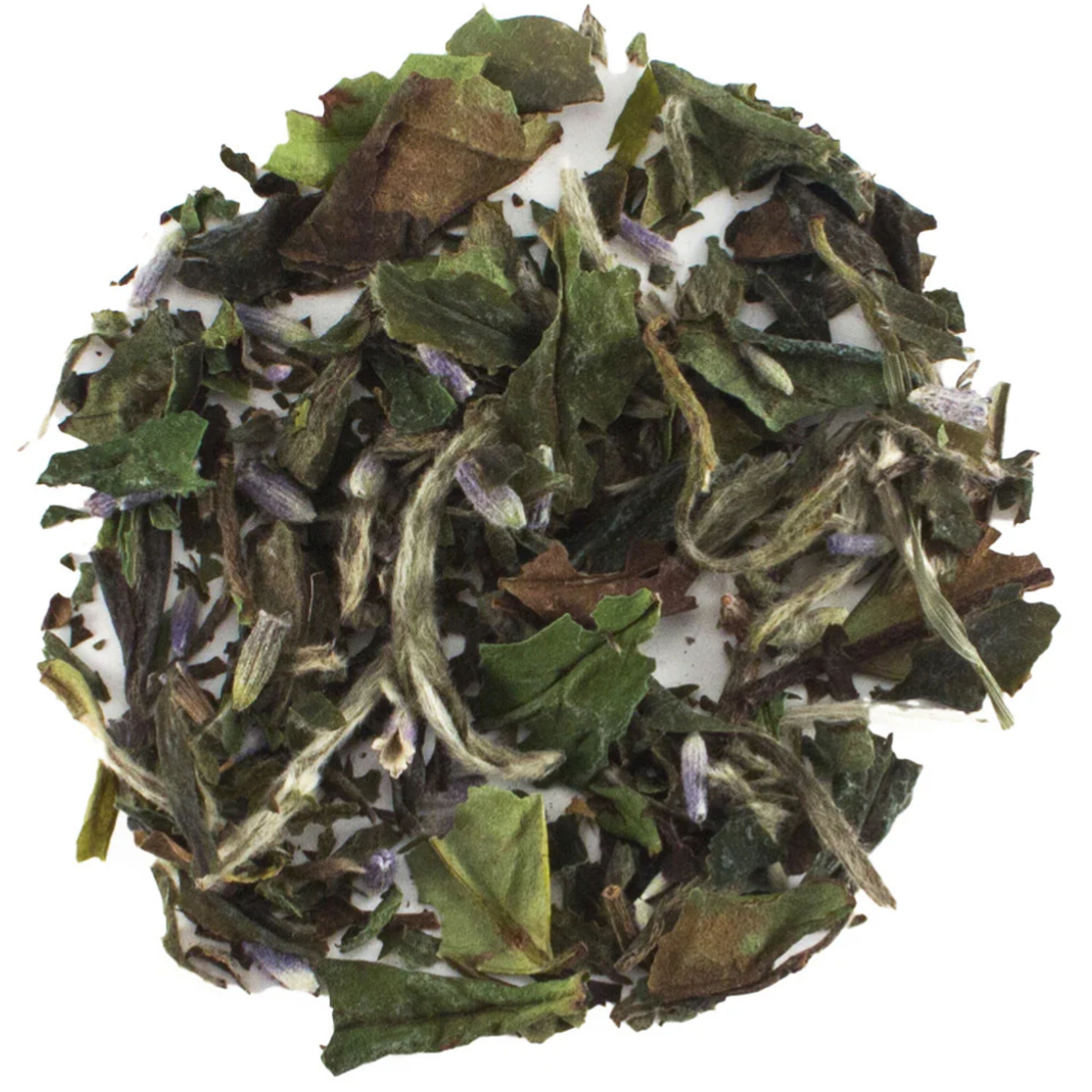 This tea is uplifting and at the same time relaxing! Type of tea-White Degree-208F Steeping time-3-5mins Caffeine-High Ingredients: White tea and and French lavender flowers Net weight 1oz. 28.34 grams