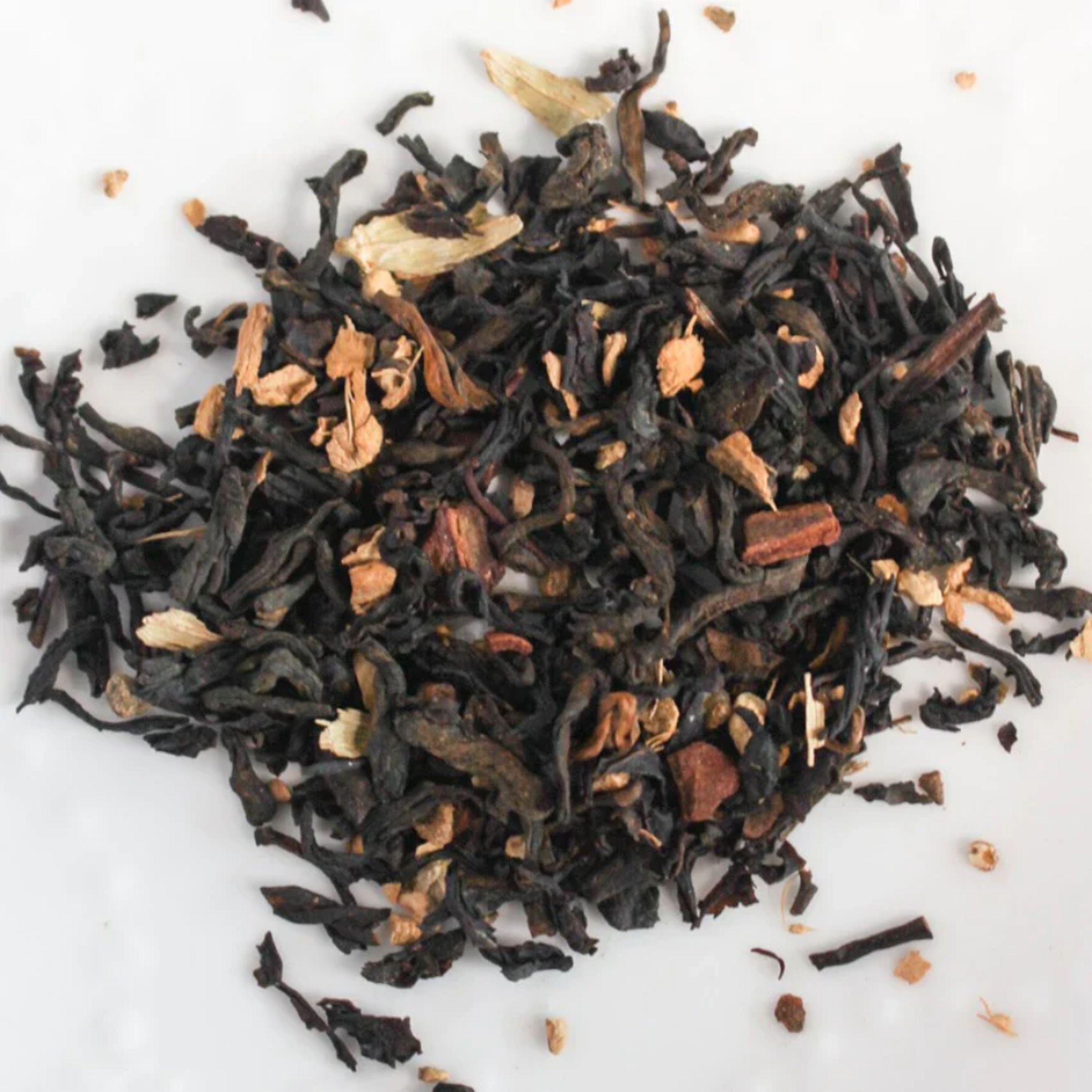 Ingredients: Black tea, pumpkin bits, cinnamon bits, chicory root, natural flavoring, ginger, cardamom, cloves.