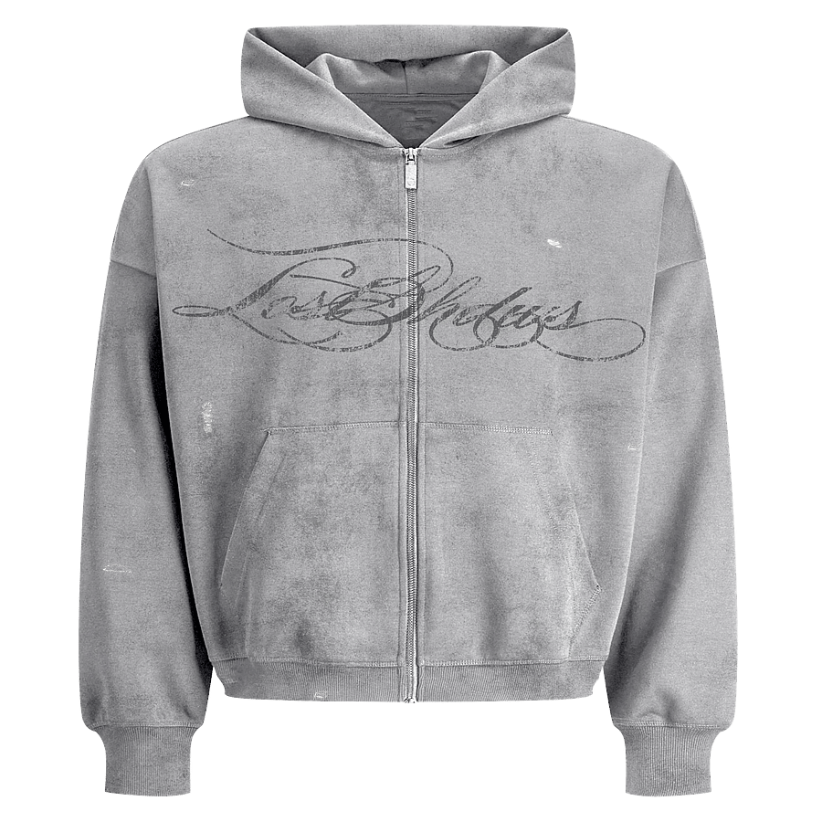 Lost Shdws Distressed Script Hoodie (Grey