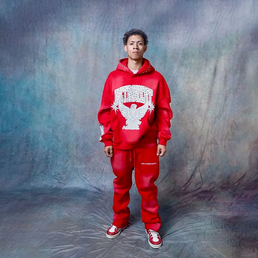 Rhinestones on sleeves , hood and chest