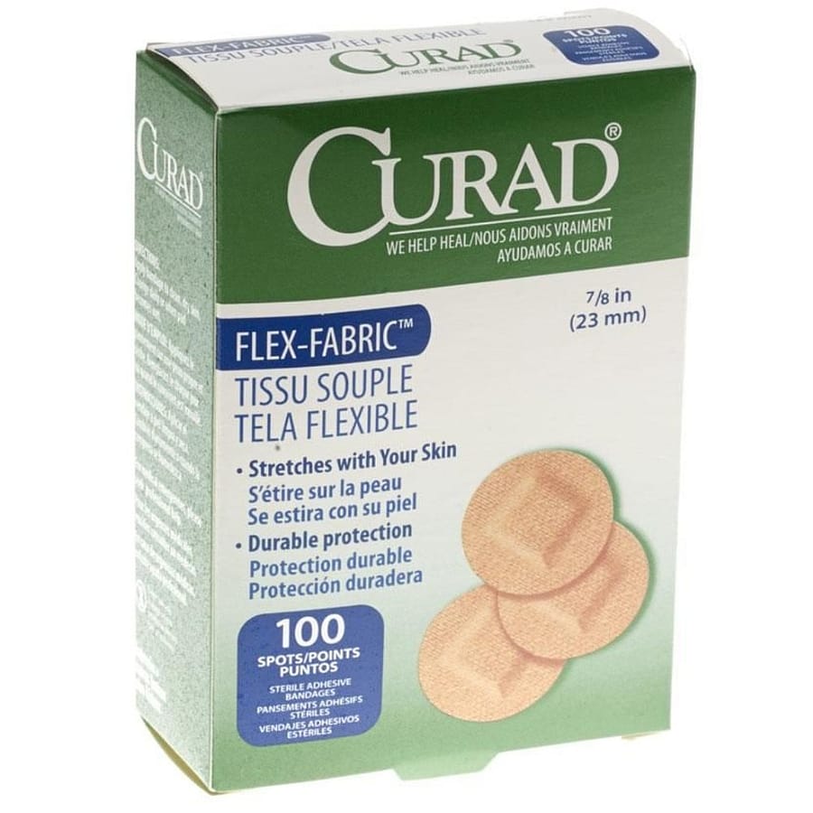 Curad Flex Fabric Circular Bandages are designed to help protect small cuts, punctures, or minor wounds while allowing comfortable movement. The flexible fabric material bends with the skin to help the bandage stay in place during daily activities. Each bandage includes an absorbent pad that helps protect the wound while keeping it covered and clean. The circular shape makes these bandages especially useful for small or hard-to-cover areas.