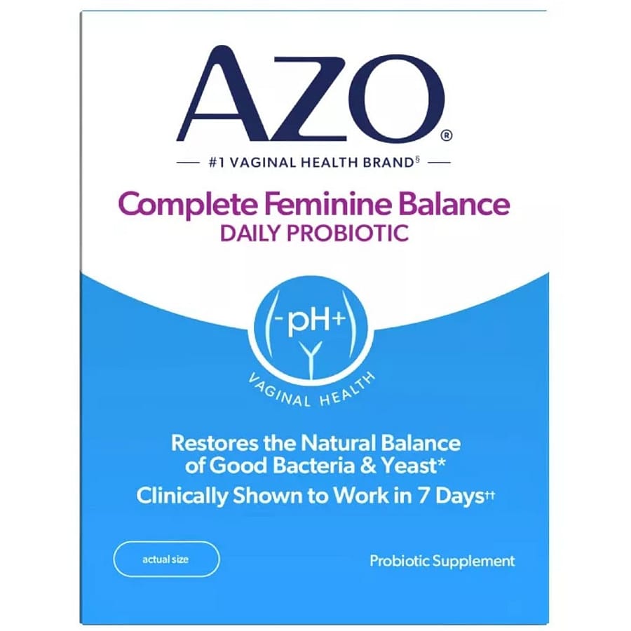 AZO Complete Feminine Balance Capsules are a daily probiotic supplement designed to help support a healthy balance of bacteria in the vaginal environment. The formula contains clinically studied probiotic strains that help maintain feminine health and support natural balance. Taken daily, these capsules help promote healthy vaginal flora and support overall feminine wellness. The easy-to-swallow capsules provide a convenient way to help maintain feminine balance as part of a regular health routine.