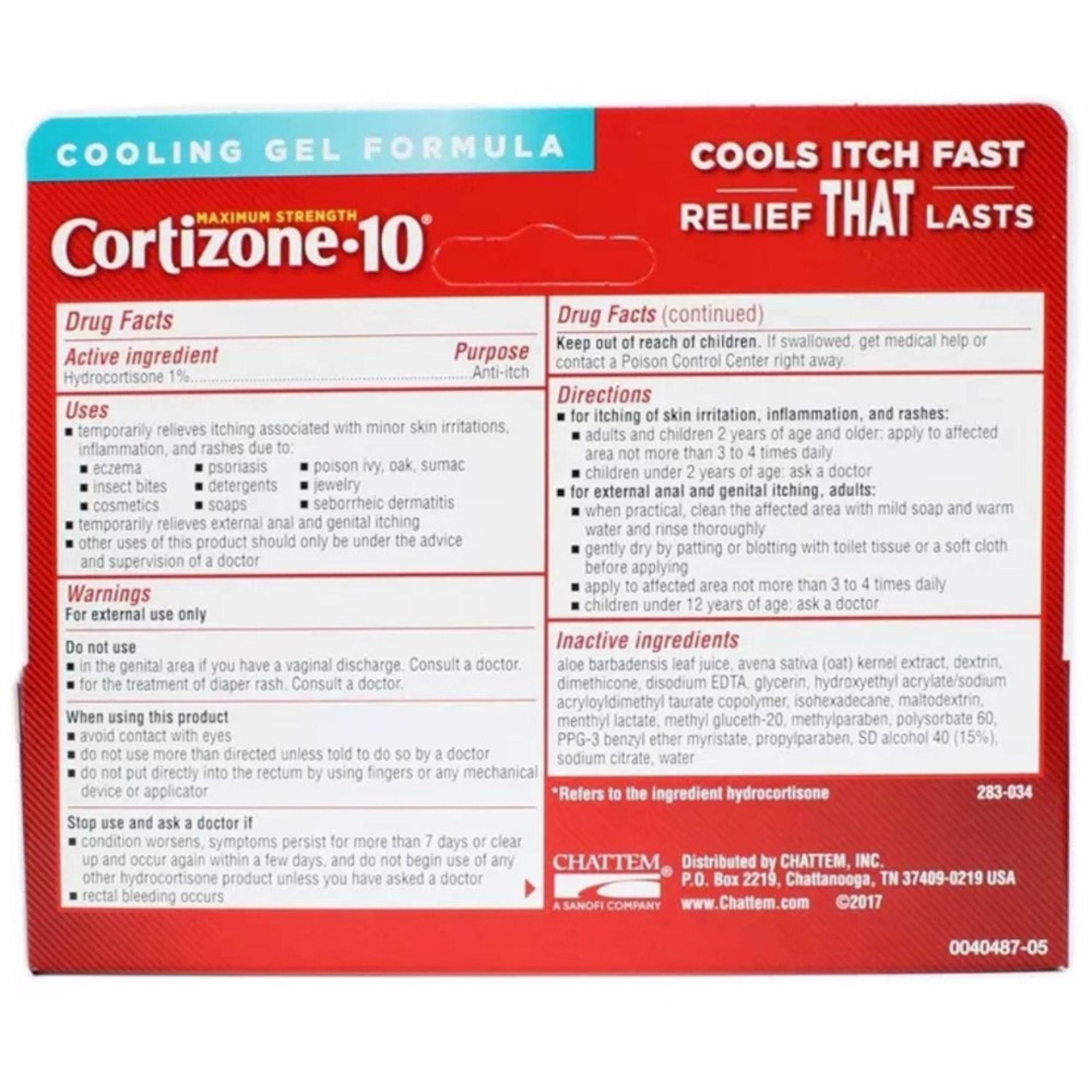 Cortizone-10 Cooling Anti-Itch Gel 1% helps relieve itching and skin irritation caused by a variety of minor skin conditions. This fast-absorbing gel contains hydrocortisone to help reduce inflammation and calm irritated skin, while the cooling formula provides a soothing sensation on contact. It can help relieve itching from insect bites, poison ivy, poison oak, rashes, eczema, and other minor skin irritations. The lightweight gel applies smoothly and dries quickly without leaving a greasy residue.