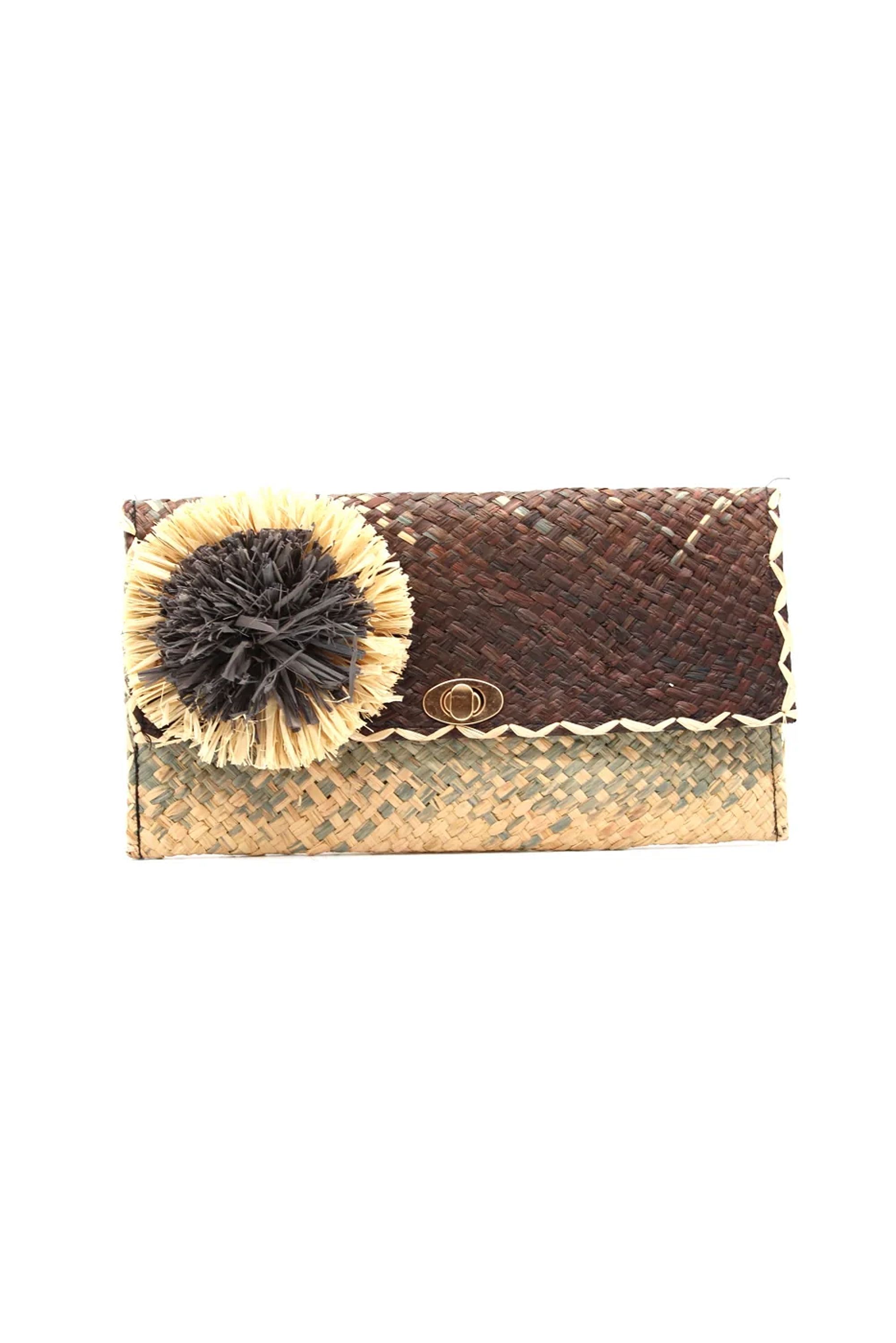 The Shebobo Holden Ombre Straw Envelope Clutch Purse with Flower Pouf is a woven straw envelope clutch with an ombre two-tone finish and a playful raffia flower pouf on the flap. Shebobo crafts this lightweight purse from natural straw with a secure turn-lock closure and neat scalloped trim. It’s perfect for beach vacations or on-the-town evenings when you want a casual, handcrafted accessory.