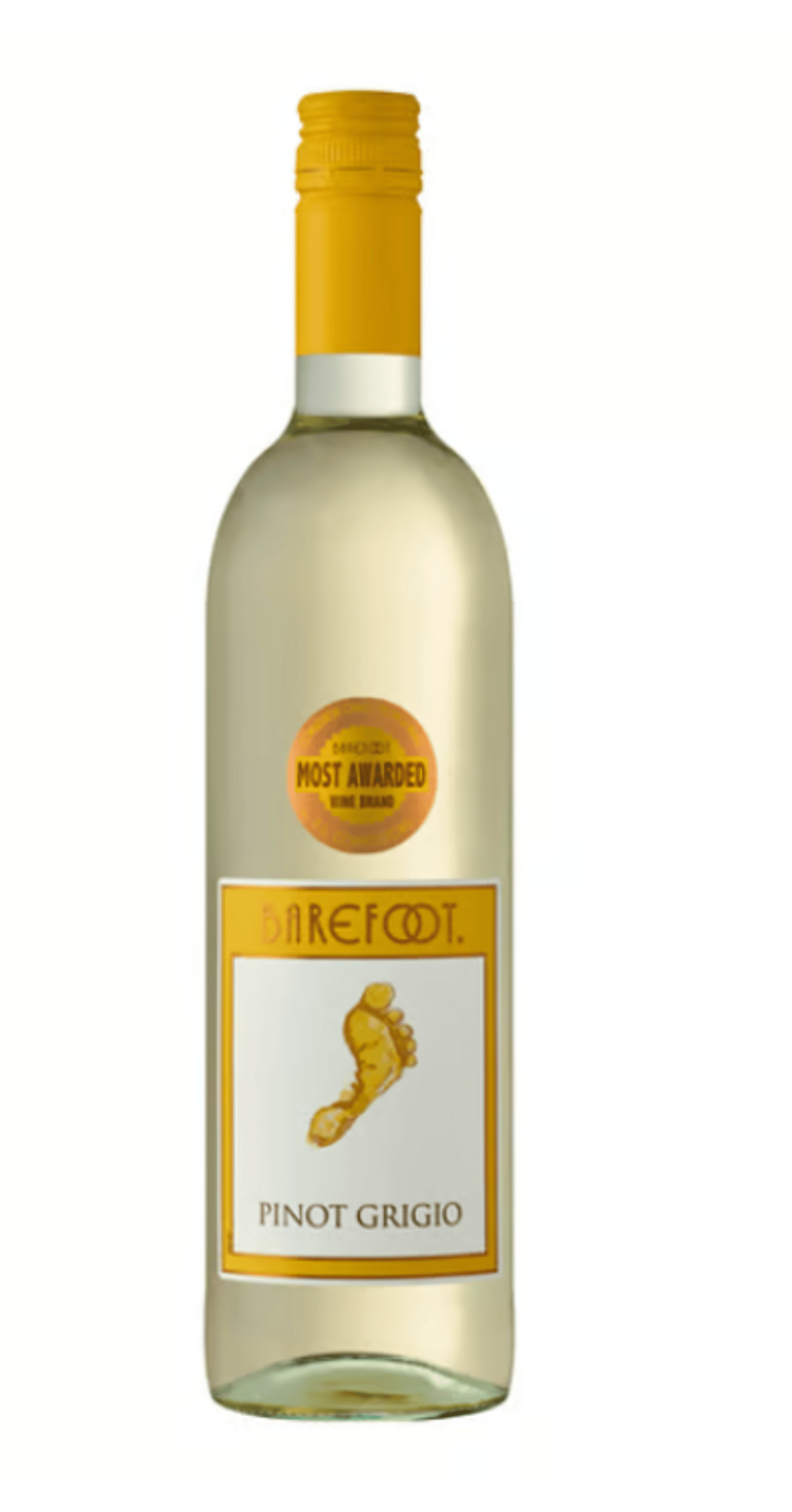 Barefoot Pinot Grigio White Wine features tart notes of green apples and the juiciness of fresh white peaches along with the floral aroma of jasmine. Crisp and refreshing, this light bodied Pinot Grigio wine pairs perfectly with traditional dishes like pasta, poultry and pizza. Ideal for sharing at outdoor parties on warm summer days, this Barefoot wine is best served chilled. This 750 mL bottle comes with a screw cap for easy opening and secure storage. This Pinot Grigio comes from Barefoot, the most awarded wine brand in US competitions. Let's get barefoot. Popular for alcohol gifting.