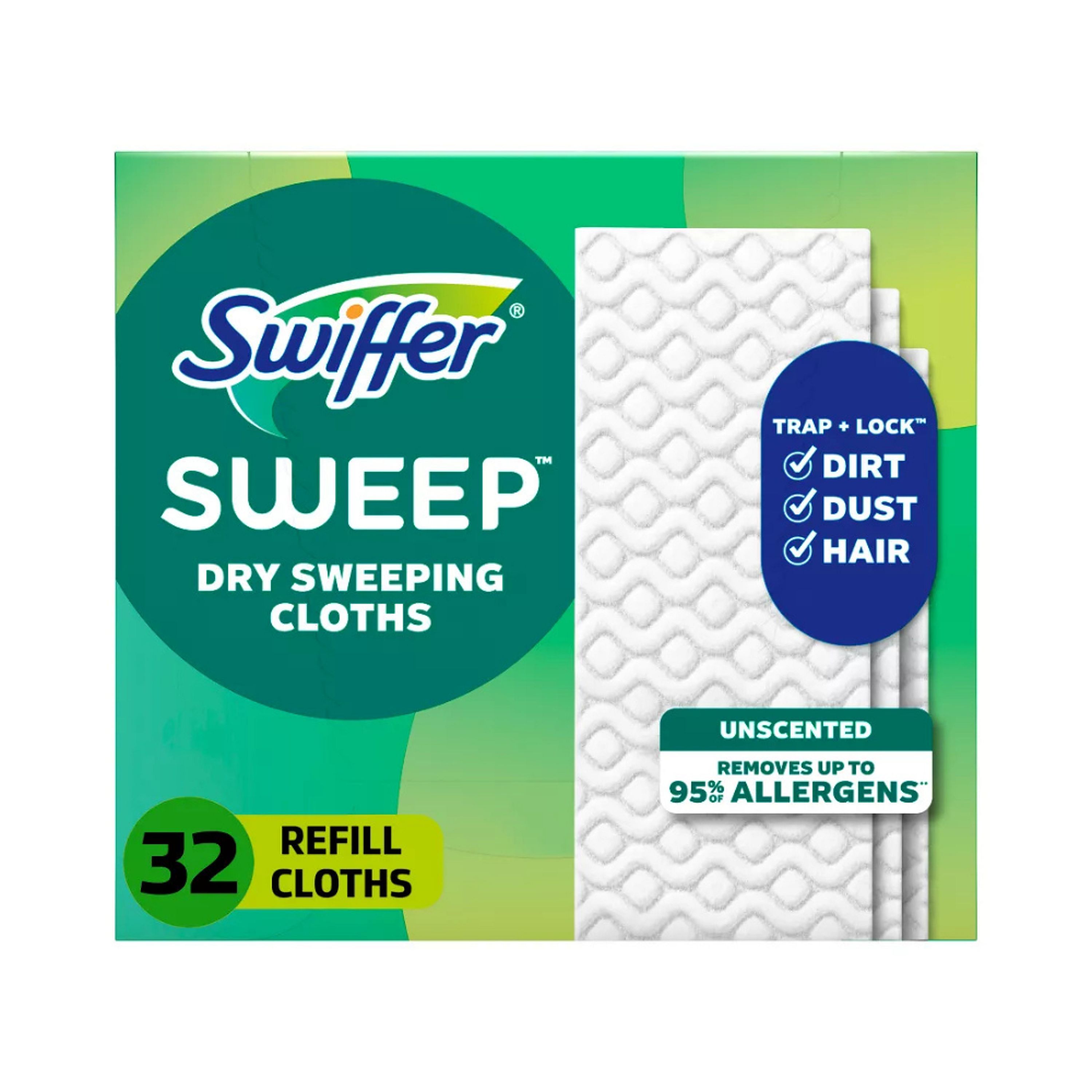 Swiffer Sweep + Mop Multi-Surface Dry Sweeping cloth refills have deep textured ridges that trap and lock dirt, dust, and hair to keep your floors clean and free of debris. Removes up to 95% of allergens*. Use with your Swiffer Sweep + Mop Device - the convenient combination of a broom and mop for a quick and easy clean.