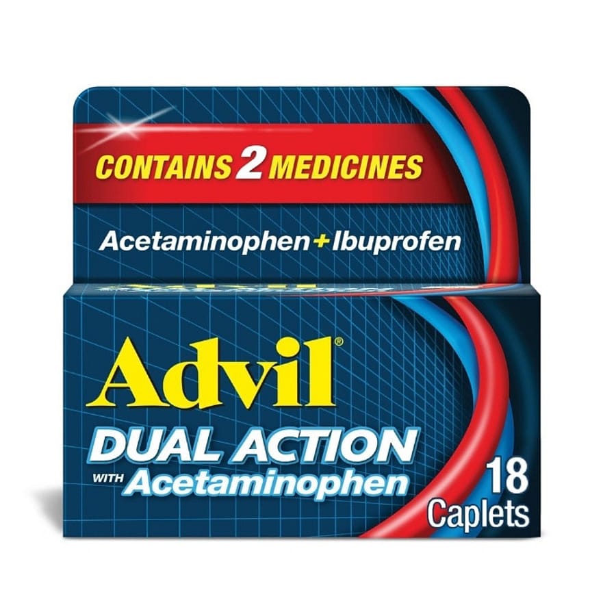 Advil Dual Action Tablets combine two proven pain relievers to help provide strong relief from a variety of common aches and pains. This formula contains both acetaminophen and ibuprofen, which work together to help reduce pain and inflammation more effectively than either ingredient alone. It helps relieve headaches, muscle aches, toothaches, back pain, menstrual cramps, and minor arthritis pain. The dual-action formula also helps reduce fever, providing dependable relief when you need it.