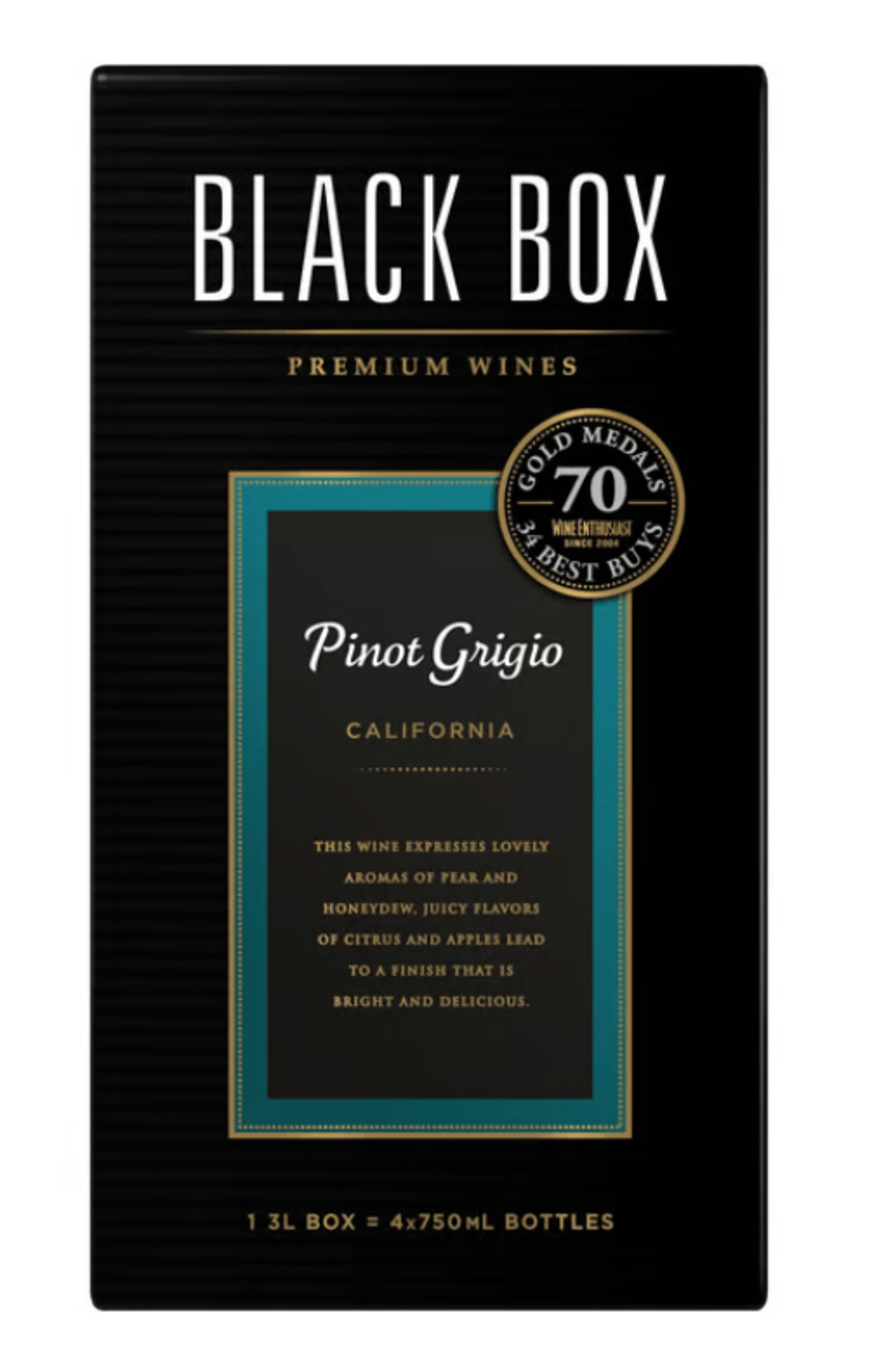 Aromas of juicy pear and citrus complement Black Box Pinot Grigio’s vibrant and clean finish. A medium-bodied California white wine, this bright Pinot Grigio boxed wine pairs deliciously with chicken, white fish, and grilled veggies. Popular for alcohol gifting.