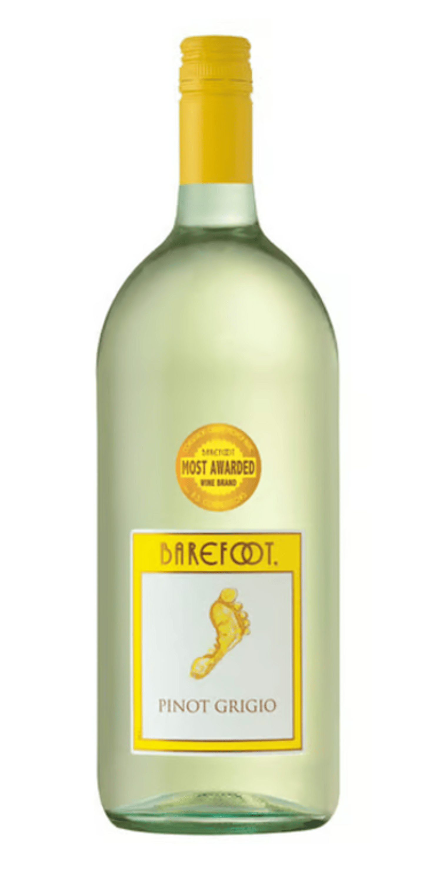 Make any occasion taste special with Barefoot Cellars Pinot Grigio. This bright white wine is made with Pinot Grigio grapes and offers all the hints of tart green apples with fresh, white peaches. Accented with floral blossoms and citrus aromas, this wine is a light-bodied classic with a crisp, bright finish. This white wine is best served chilled and pairs perfectly with traditional favorites like poultry, pasta and pizza. It’s also the ideal wine for making cocktail recipes, like a Pinot Mule. Barefoot Cellars Pinot Grigio is great for a variety of occasions, whether you're entertaining friends and family at an outdoor party or you need a wine gift for your best girlfriend. Each 1.5 L bottle contains about 12 glasses of wine with 12.5% alcohol by volume. Produced and bottled in California, Barefoot is the most awarded wine brand in U.S. competitions. In addition to Pinot Grigio, Barefoot wine is also available in Moscato, Rose, Chardonnay and other varieties. Popular for alcohol gifting.