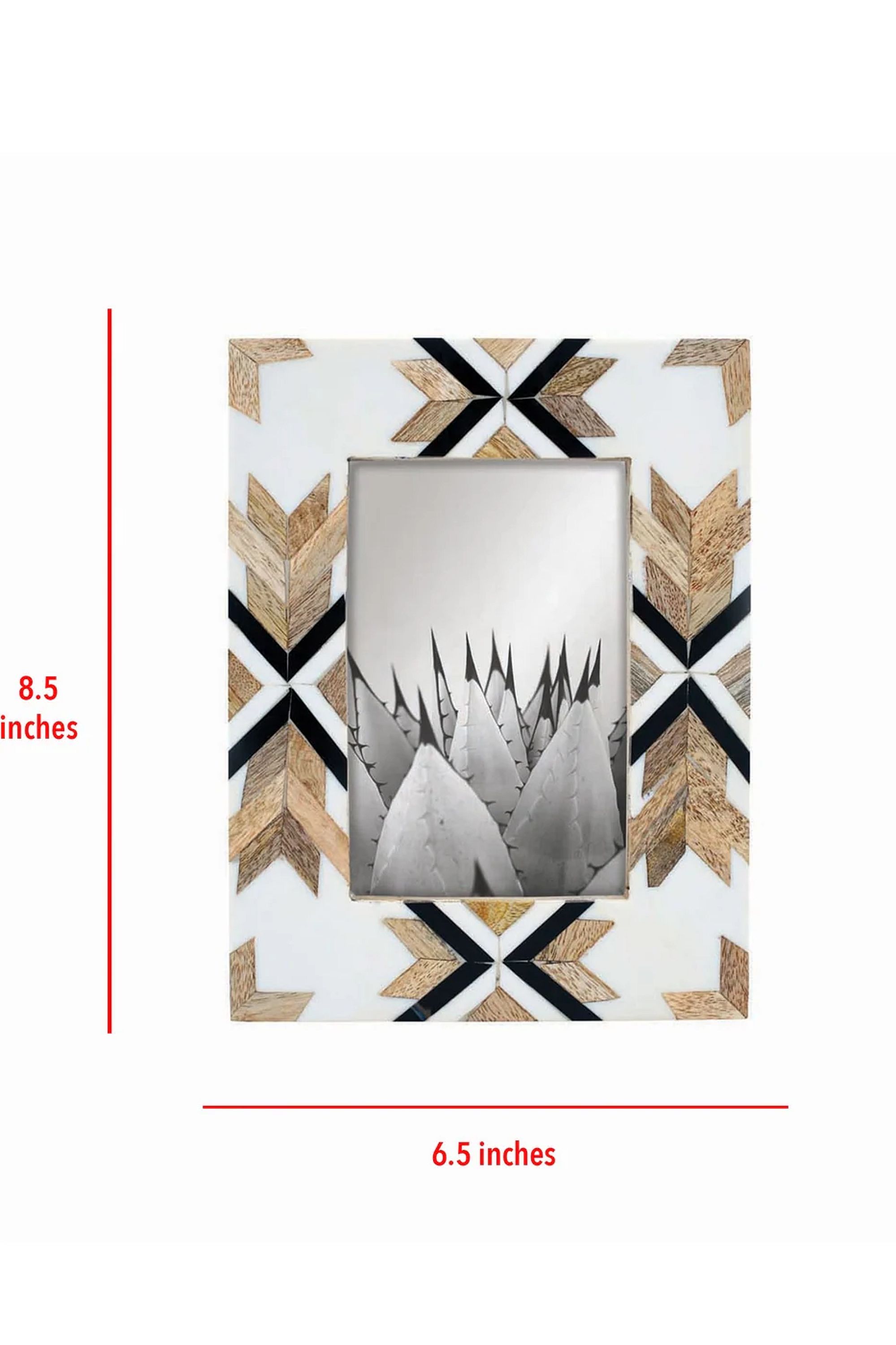 This Foreside Home & Garden 4x6 Western Decor Picture Frame is a tabletop frame sized for a 4x6 photo with a Western-inspired geometric inlay. The frame features wood-toned accents on a white background and a stand-back for easy display on shelves or consoles. Its rustic, farmhouse-ready styling makes it an easy way to add warmth and personality to a mantel, entry table or gallery shelf.