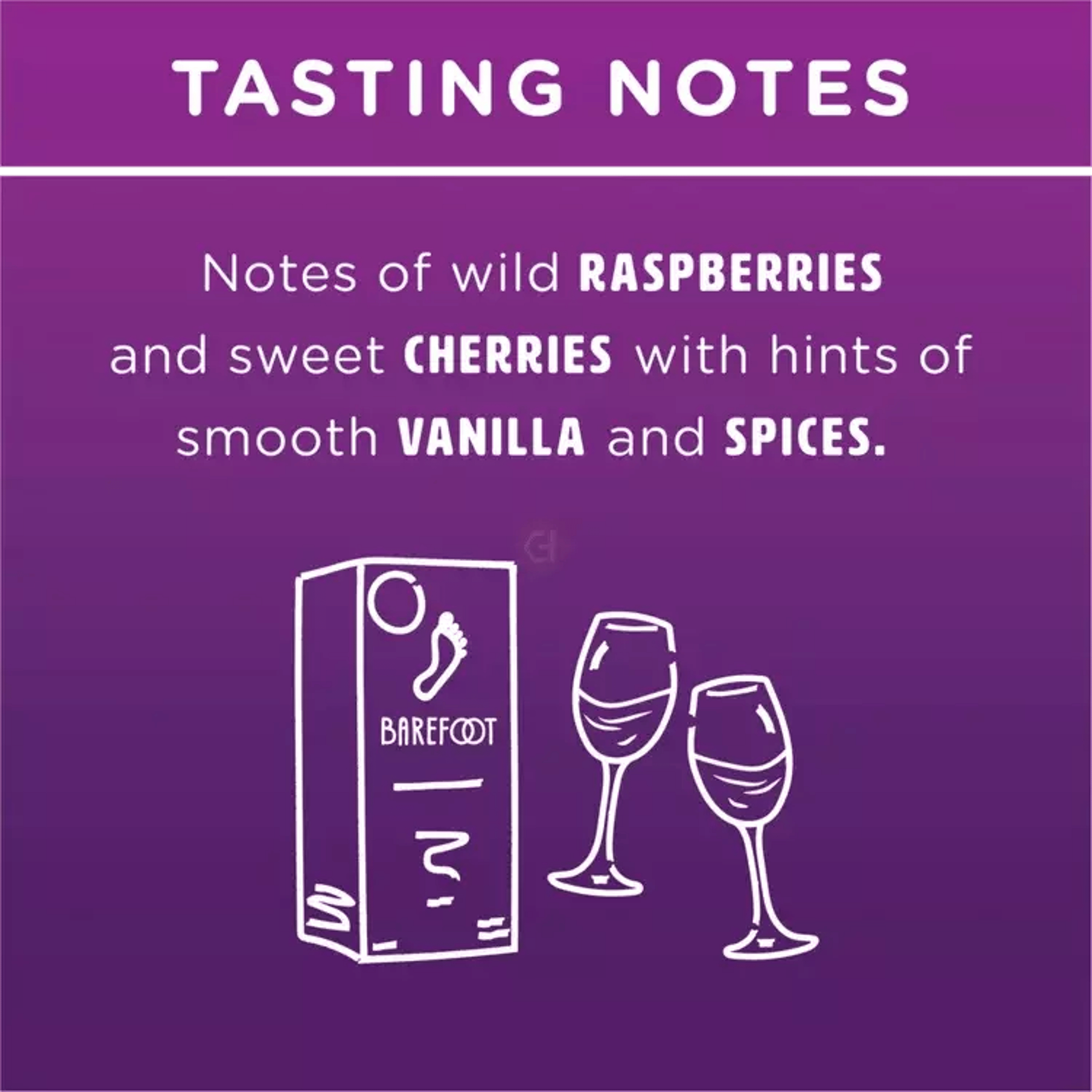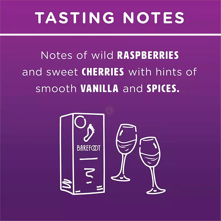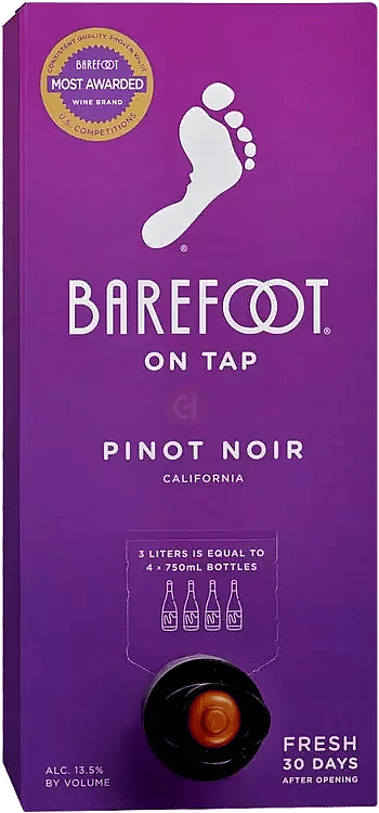 Barefoot Pinot Noir is a silky, smooth, fruit forward red wine! Dark cherry and wild raspberry blend perfectly with brown spice aromas in our California Pinot Noir. This 3L box of wine is equal to 4 x 750ml bottles, and stays fresh up to 30 days after opening.
