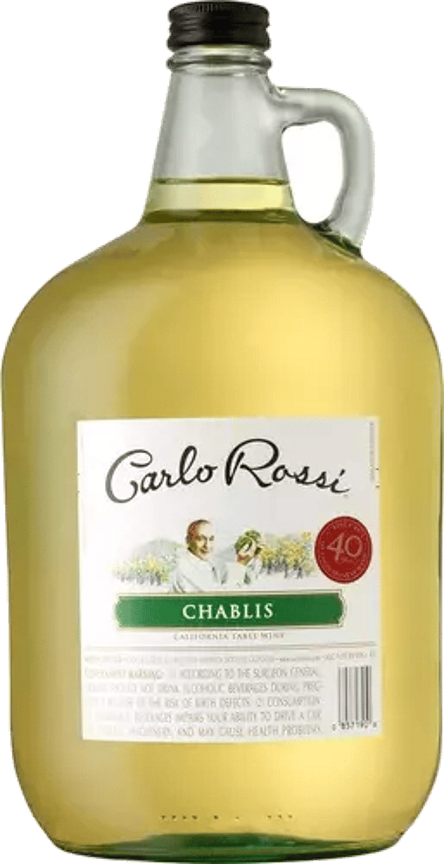 Carlo Rossi Chablis is a semi-dry and light-bodied white wine with a crisp, light taste and flavors of ripe pear. It can be enjoyed with grilled seafood, pasta dishes or salads. For forty years, people have been enjoying Carlo Rossi’s unpretentious, fruit forward wine in a jug.