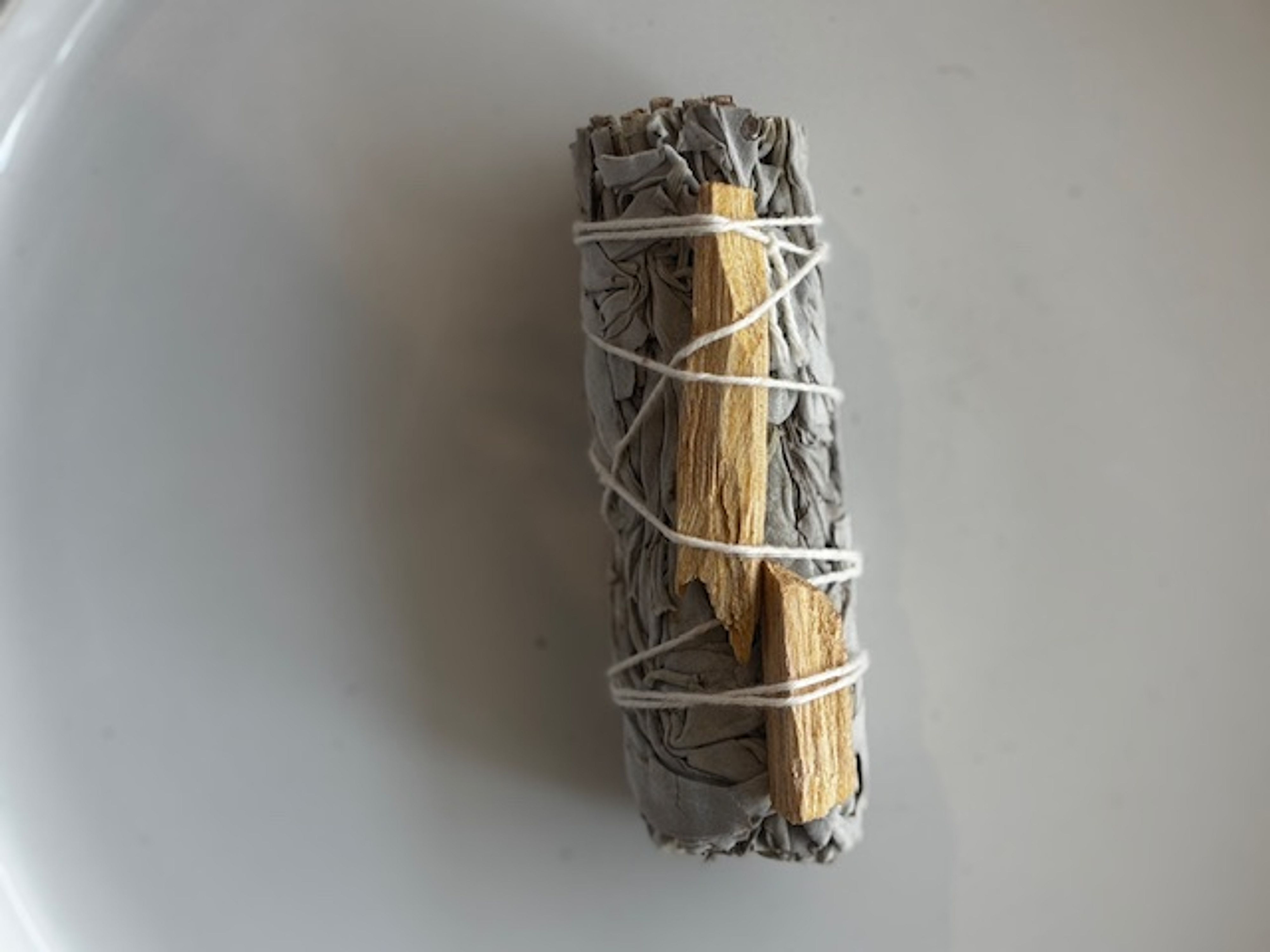 Burn this White Sage + Palo Santo Stick and cleanse your space. This duo of White Sage and Palo Santo unites purification and positivity – White Sage clears away negativity while Palo Santo invites light and peace. Together they balance and harmonize your space and energetic field.
