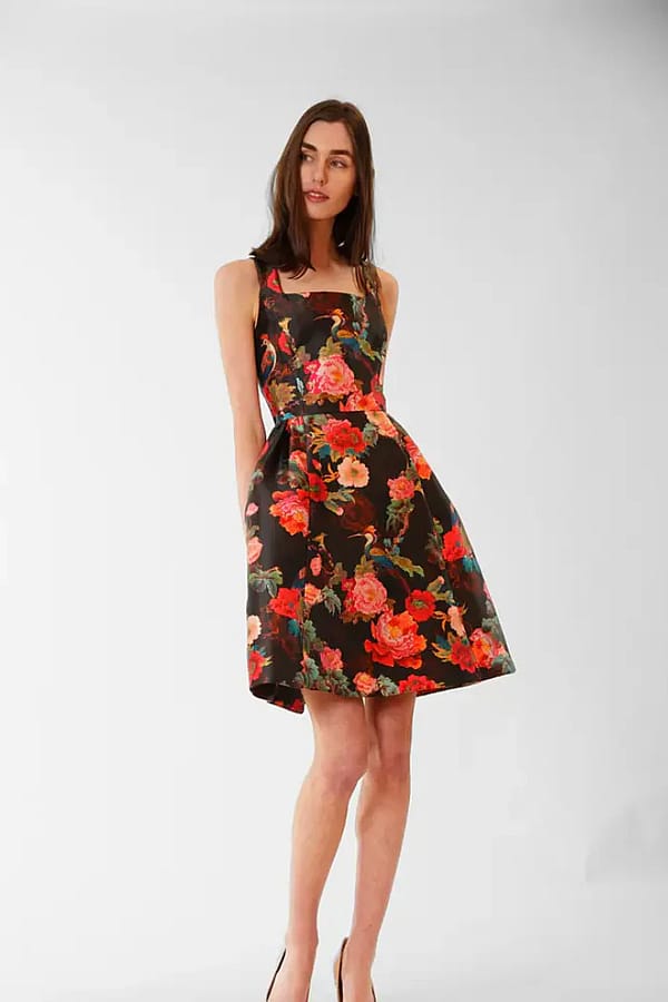 A floral sleeveless gown with a scoop neckline and a flared skirt, perfect for dressy occasions. The Julia Jordan Sleeveless Gown With Scoop Neckline is crafted in a structured floral fabric with a defined waist and knee-length hem. Julia Jordan designed this piece to read romantic and classic, ideal for wedding guests or cocktail events.
