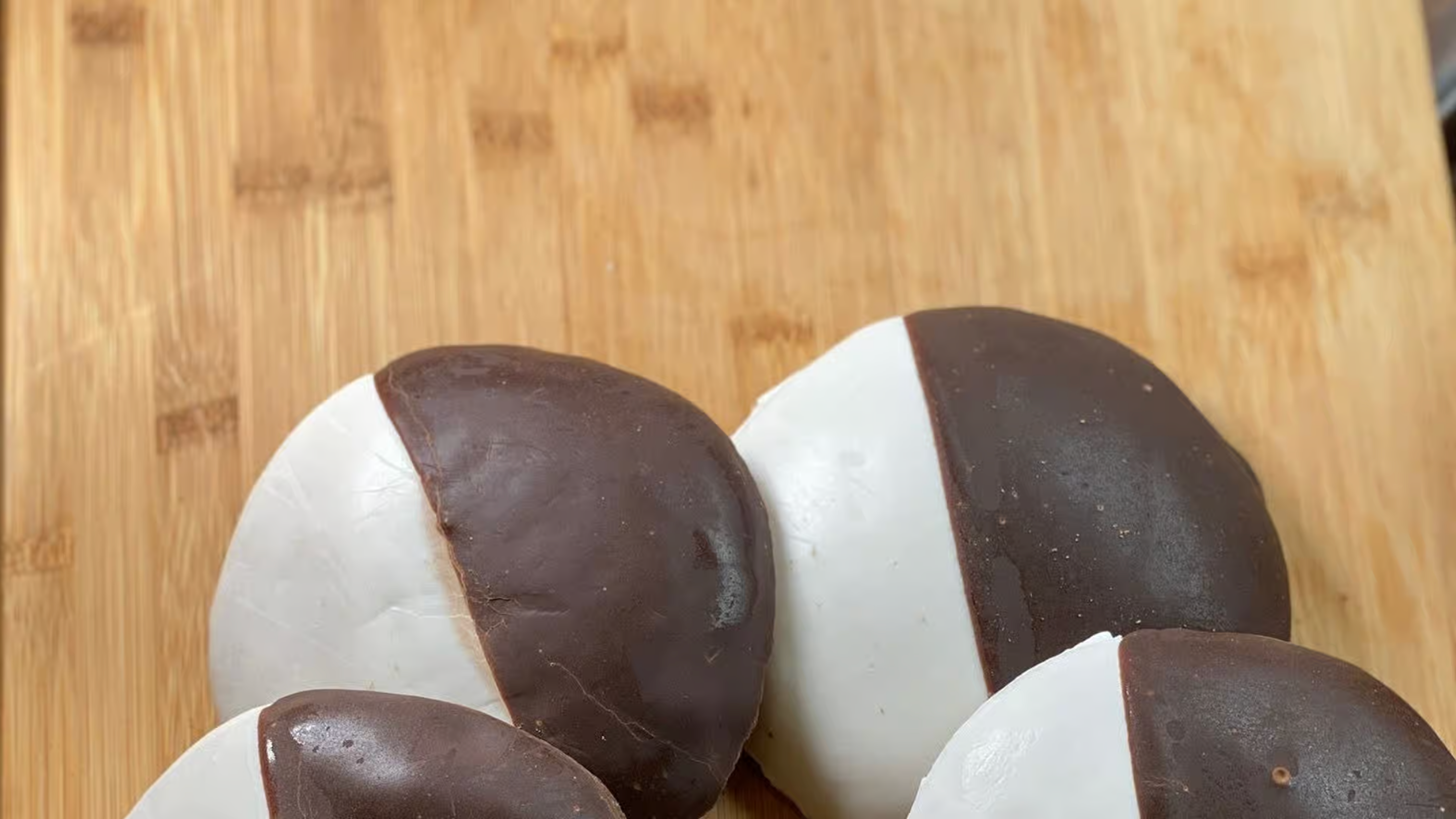 Half chocolate, half vanilla icing on a soft, cakey cookie.
