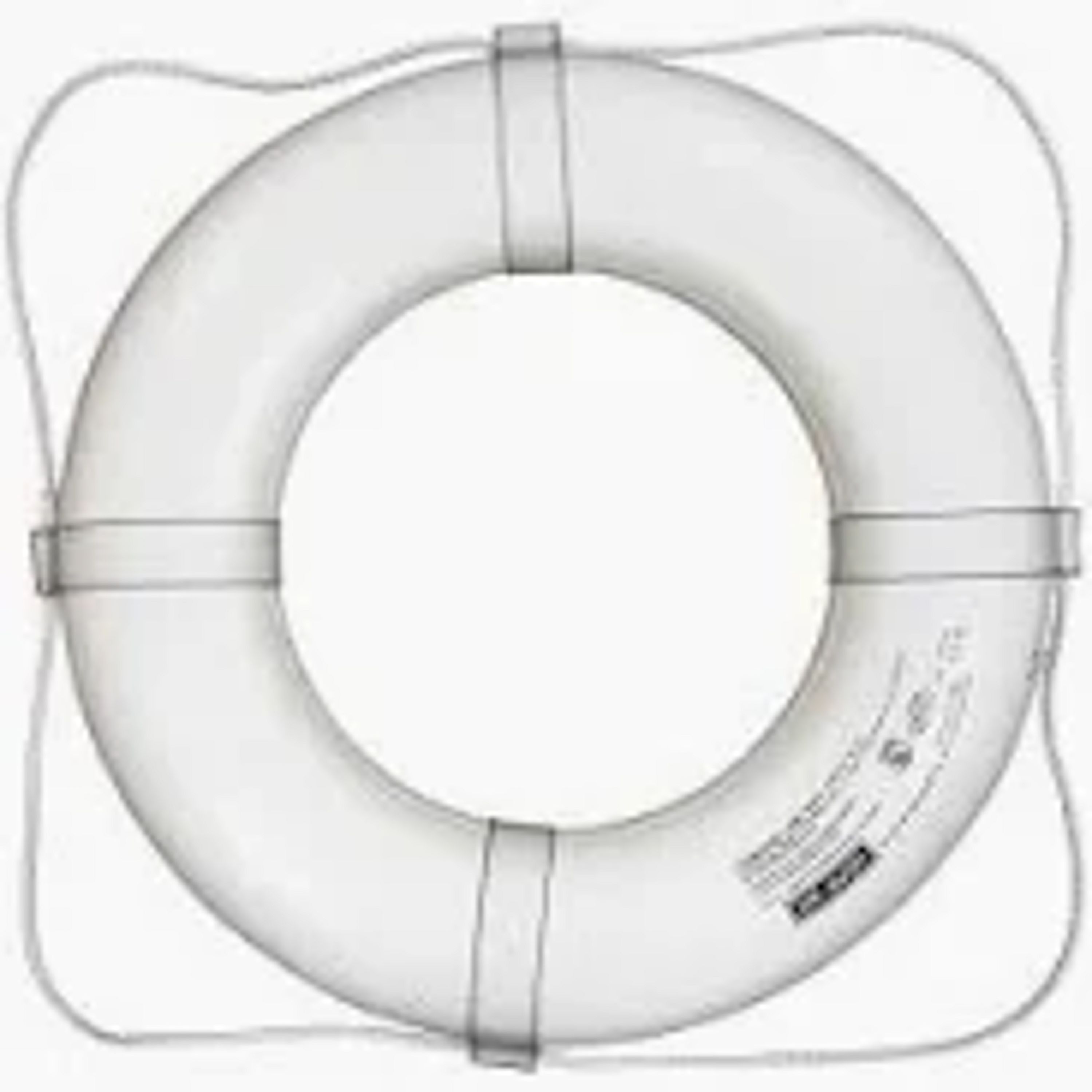 A classic 24‑inch life ring (lifebuoy) used for water safety on boats, docks, or pools. It’s a sturdy flotation device you can throw to someone in the water to help keep them afloat until they’re rescued. Brightly colored and easy to grab, it’s an essential piece of safety gear for any water‑going vessel.