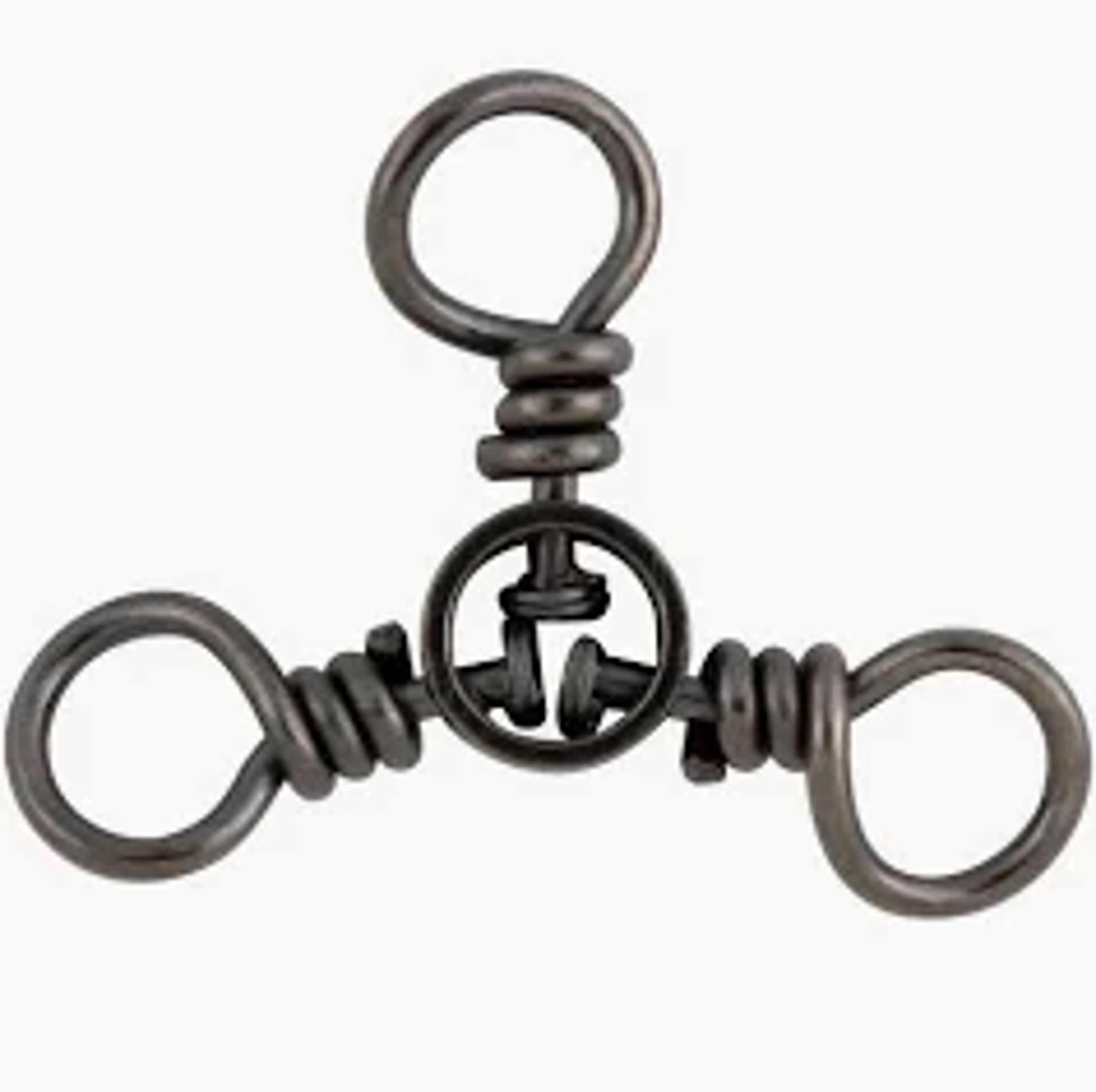 A strong, mid-to-large size fishing swivel used to connect three lines in one setup. It’s great for rigs that need a main line, hook leader, and sinker line. Built from durable, corrosion-resistant metal, it helps prevent line twisting and keeps your rig organized, making it ideal for targeting medium to larger fish.