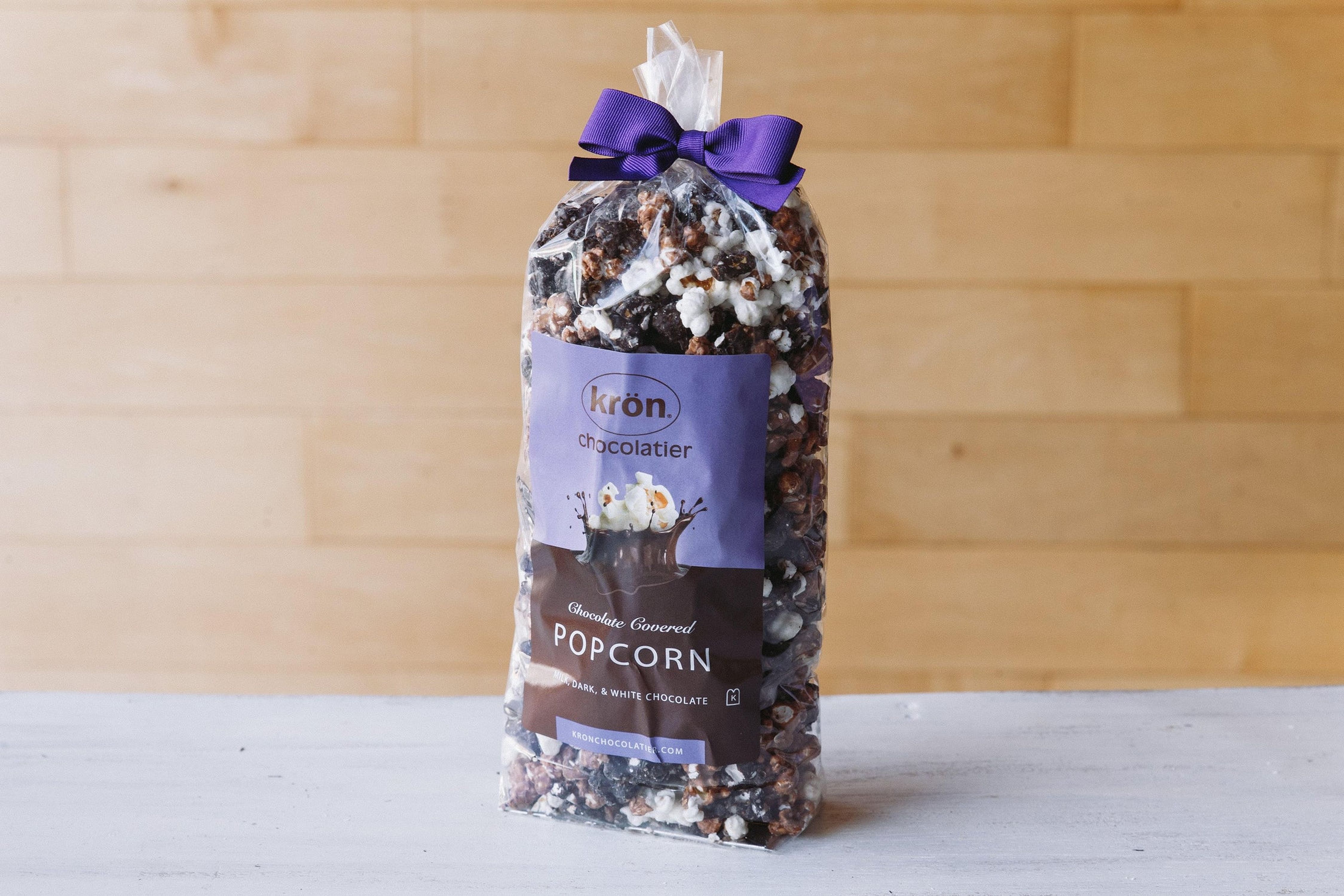 Enjoy Krön's famous chocolate covered popcorn-- it a sweet and salty, handcrafted version of everyone's favorite treat! Our chocolate covered gourmet popcorn is hand-mixed using the finest premium milk, dark and white chocolates. It's been a customer AND staff favorite at our store, we hope you'll love it too! A wonderful choice for corporate gifting, teacher gifts, secret Sa