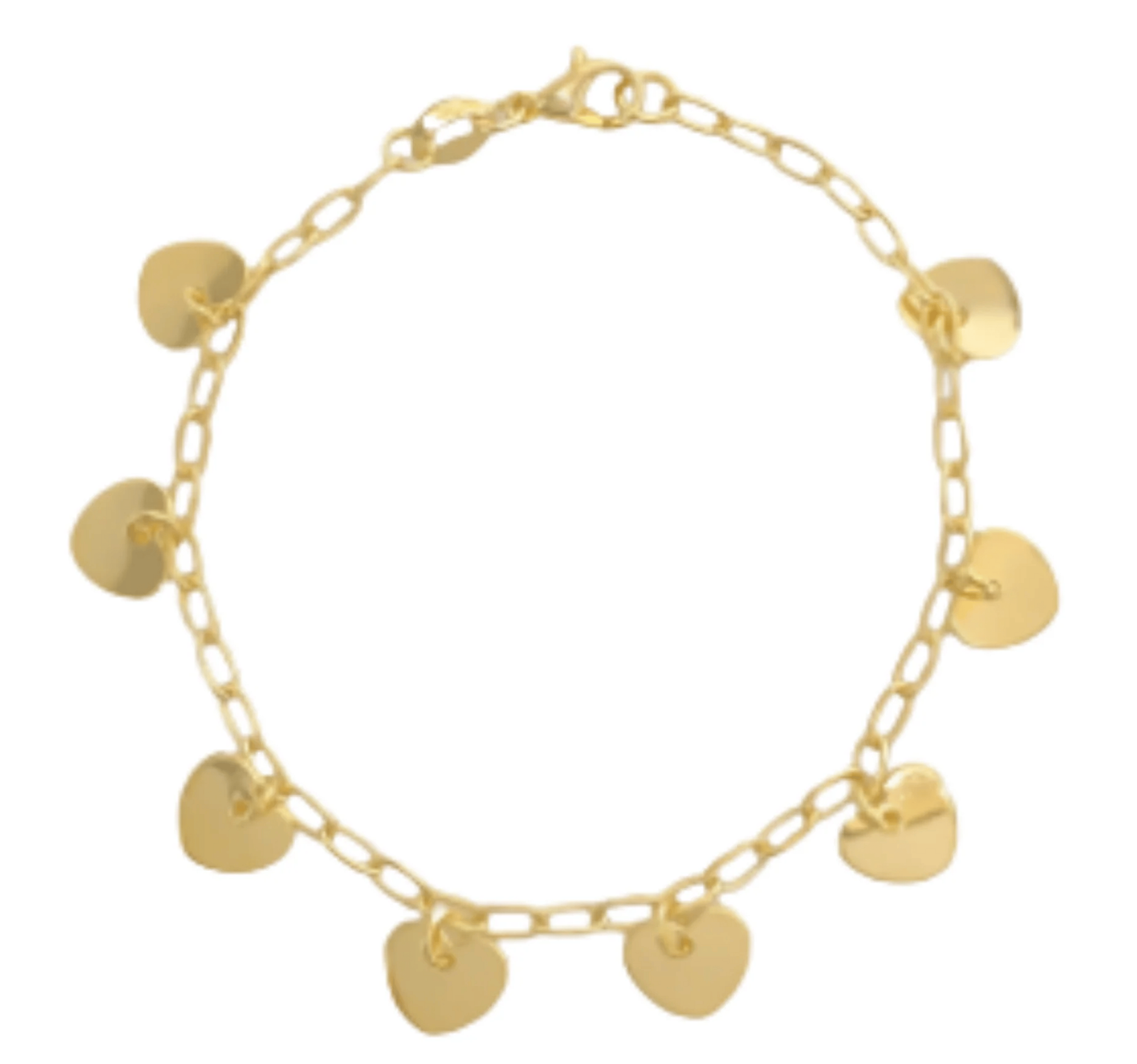 GOLD FILLED PAPERCLIP CHIAN WITH 8 DANGLING FLAT HEART CHARMS