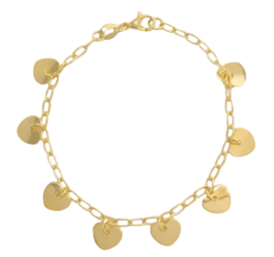 Paperclip chain bracelet with dangling heart charms