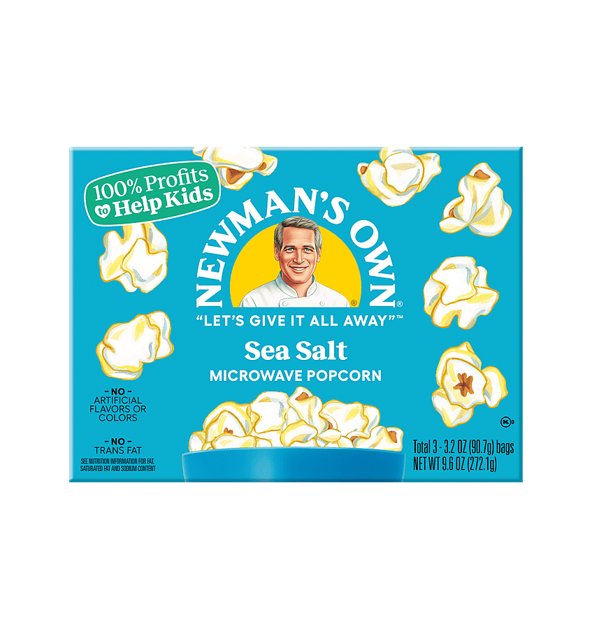 For those who prefer a simple salted popcorn snack, you’ll love the simple taste of our butter-free option. Newman’s Own Sea Salt Microwave Popcorn has all the original flavor of old style picture show popcorn, developed by “Pops” Newman himself.