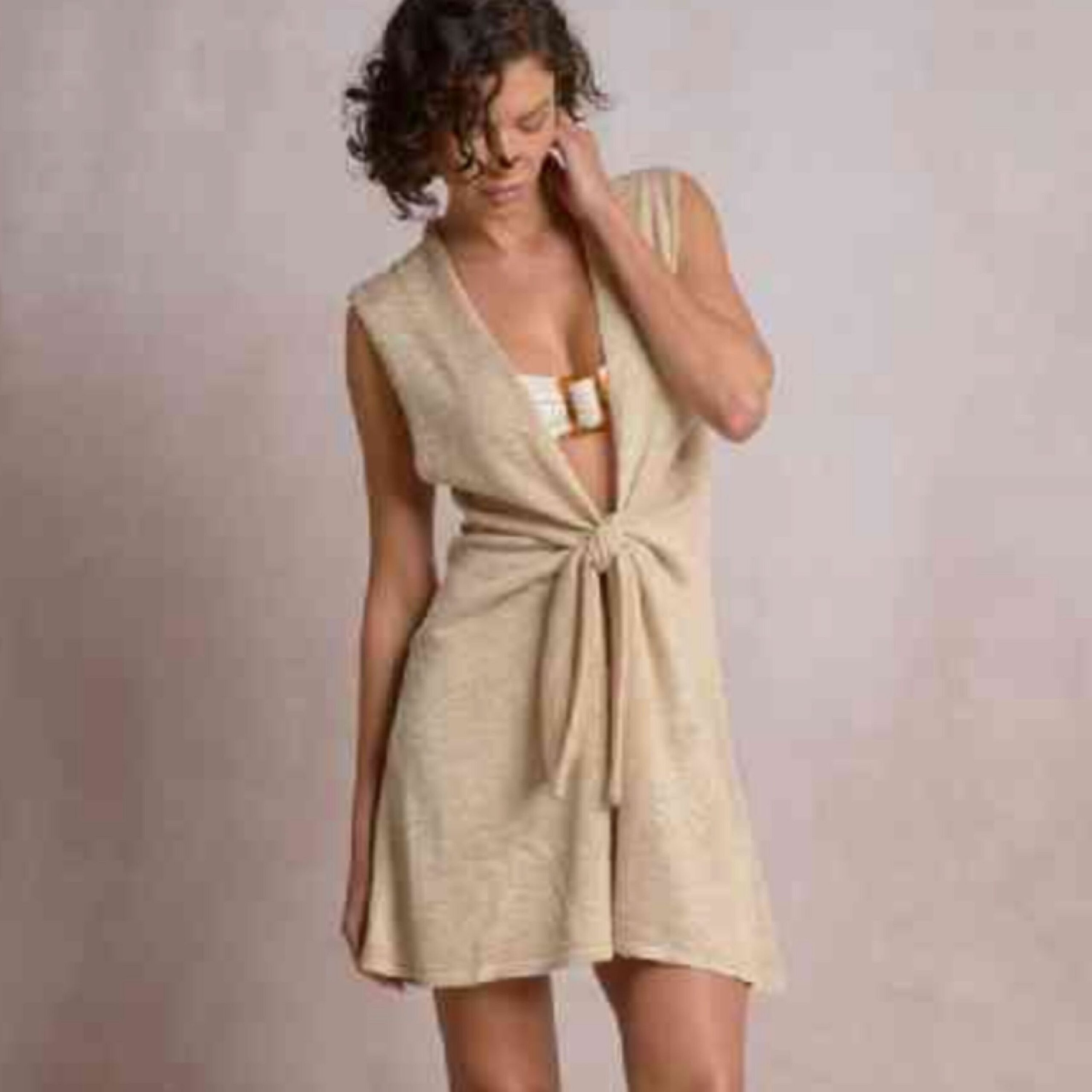The Elan Gold Coverup Tie Front features a luxurious fabric and a stylish design, perfect for layering over your favorite swimsuit. Its versatile tie-front detail adds an elegant touch to any beach or poolside look.