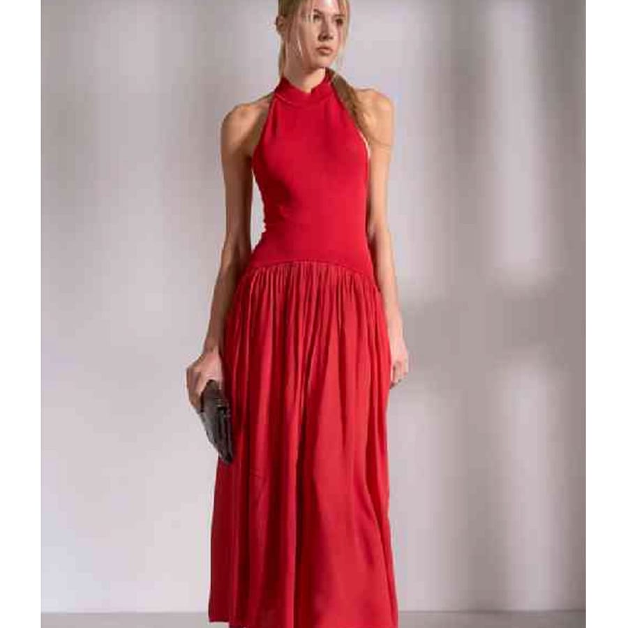 The Elan Red Sweater Maxi Dress combines an elegant design with a comfortable fit, making it a versatile choice for casual outings or sophisticated occasions. Its timeless style ensures effortless wear throughout the seasons.