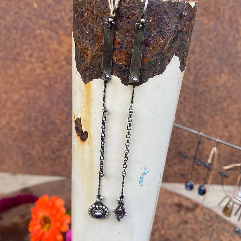 Lovely light weight earrings with Bali Amethyst charms.