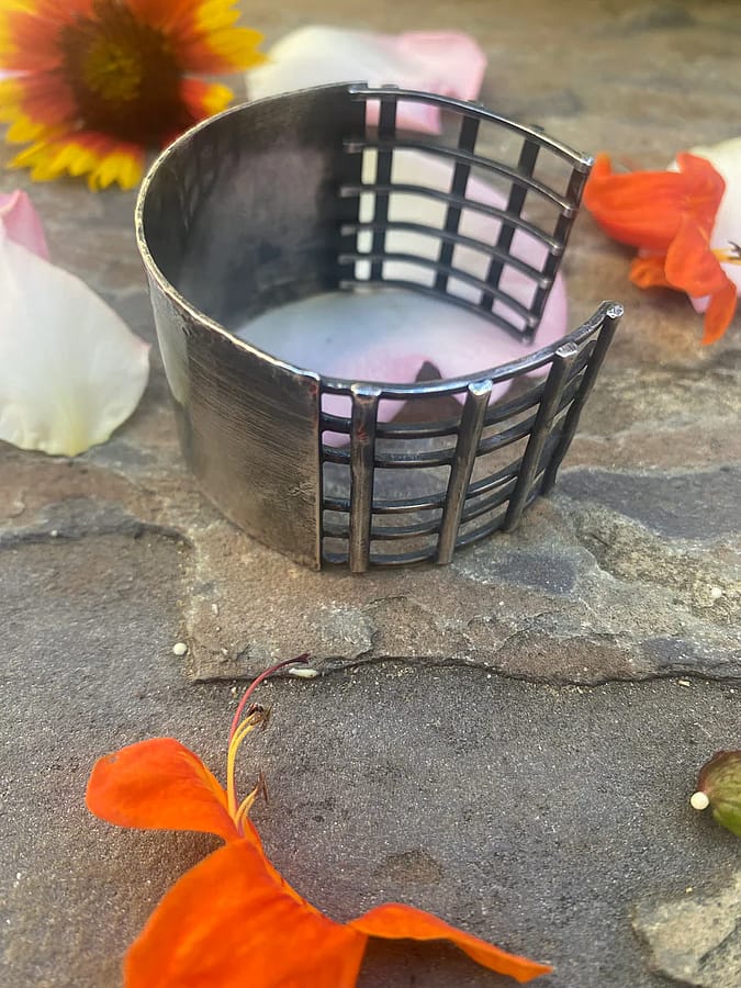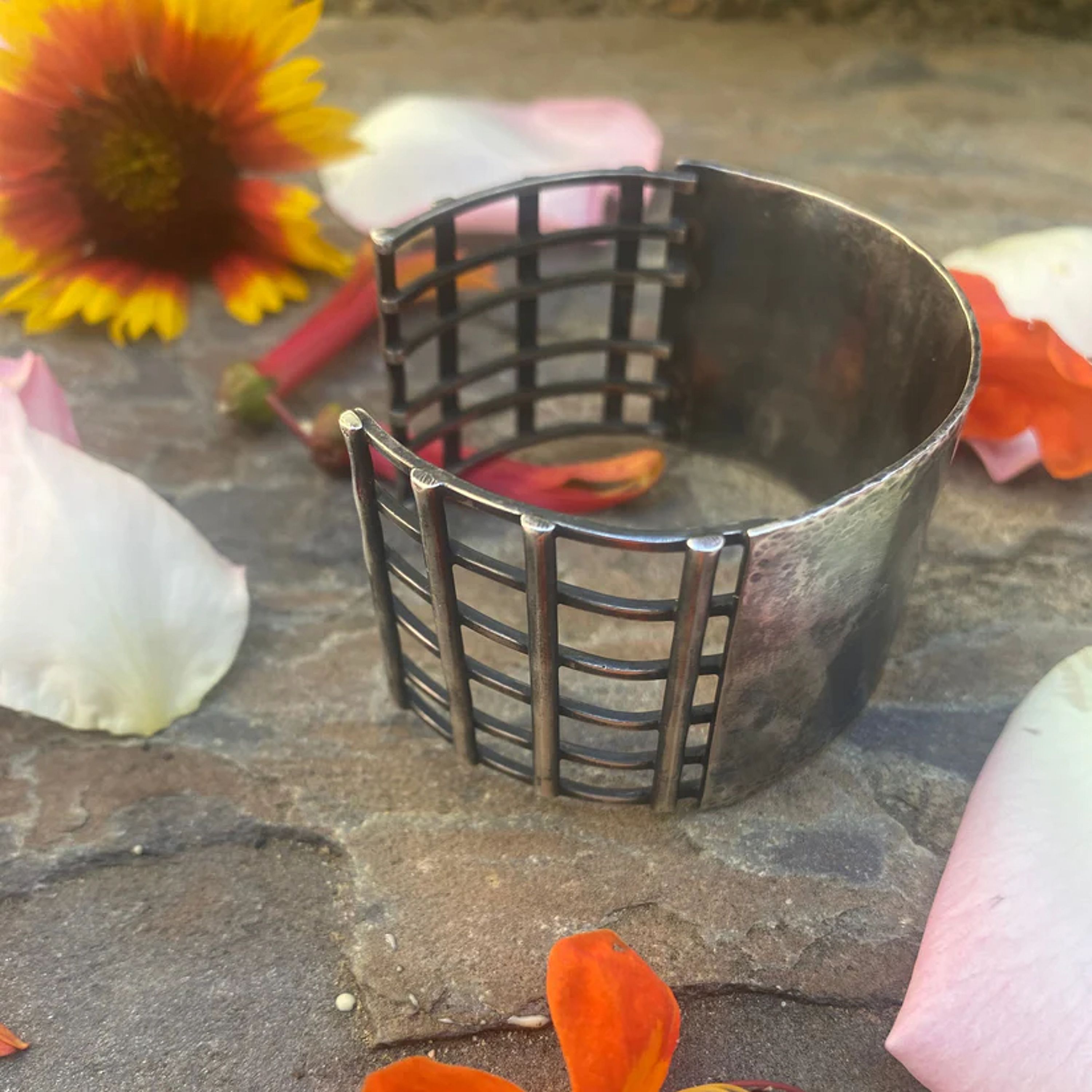 This cuff is hand made of sterling silver, part solid and part latter.